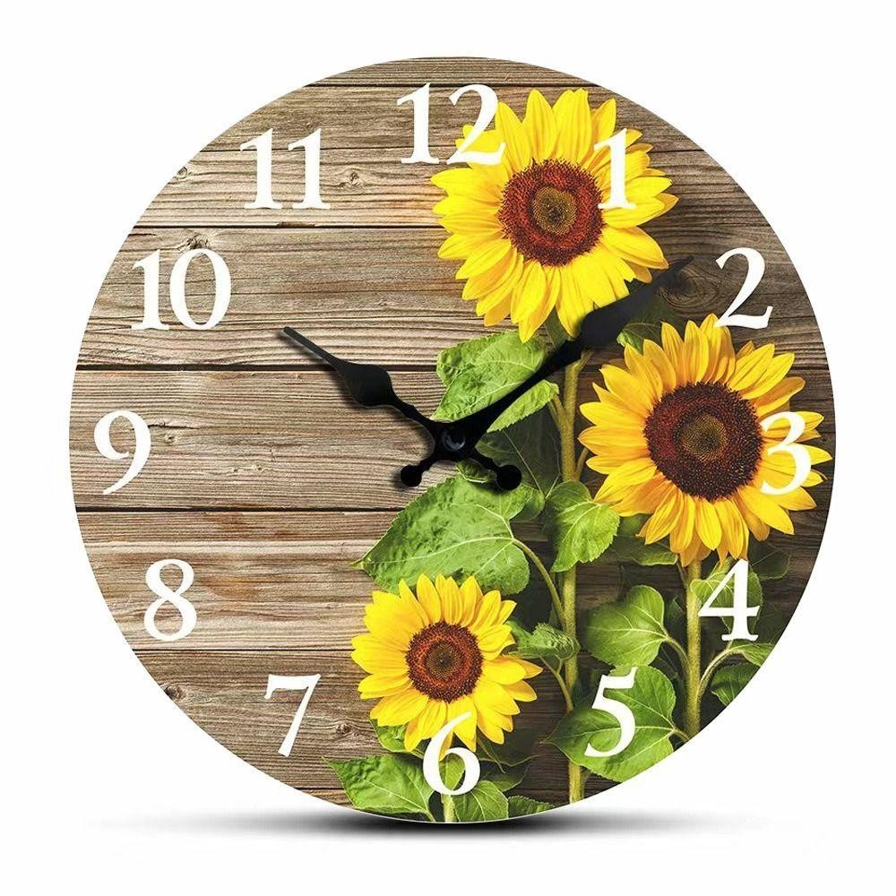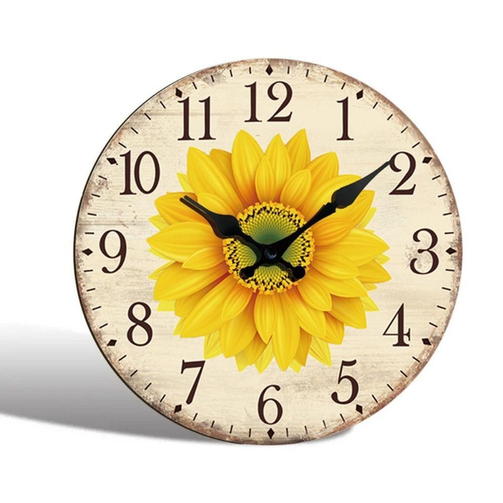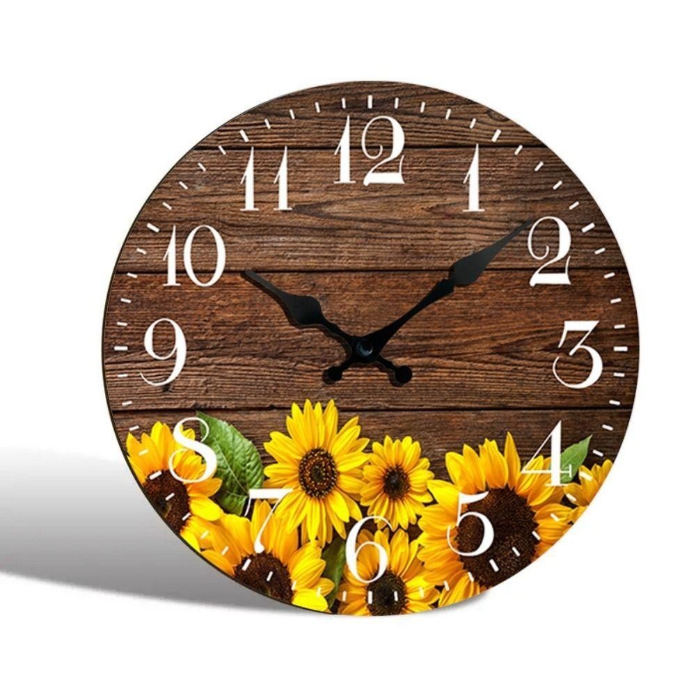 OCEANMAP Sunflower Clock, Retro Wooden Silent Wall Clock, Battery Operated Round Modern Non-Ticking Hanging Wall Decor Clocks Dining Room