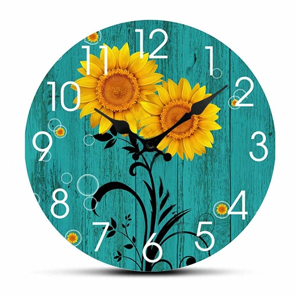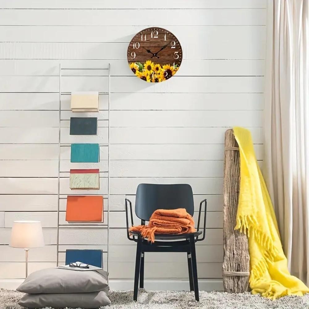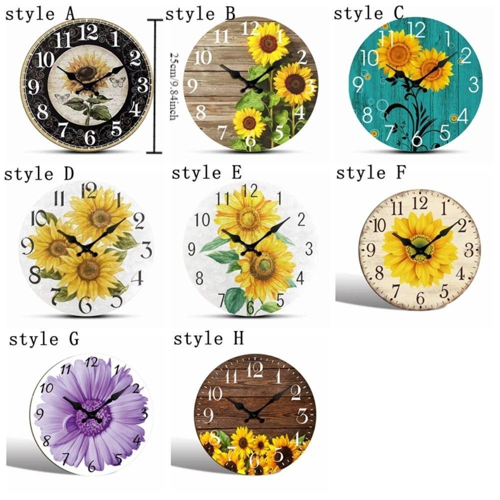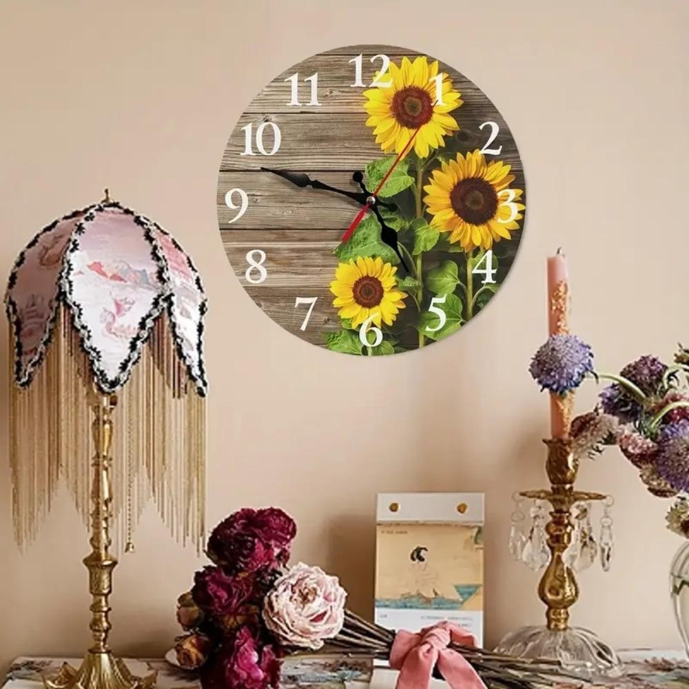 OCEANMAP Sunflower Clock, Retro Wooden Silent Wall Clock, Battery Operated Round Modern Non-Ticking Hanging Wall Decor Clocks Dining Room