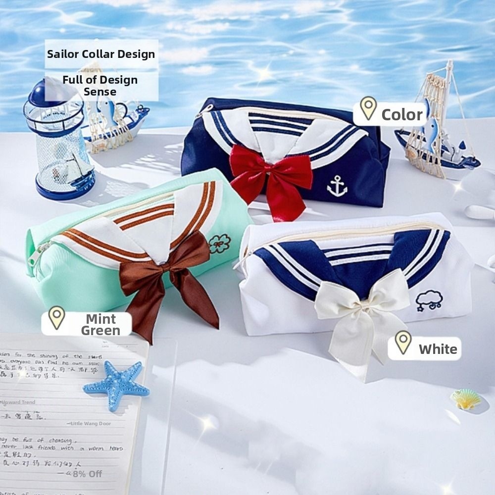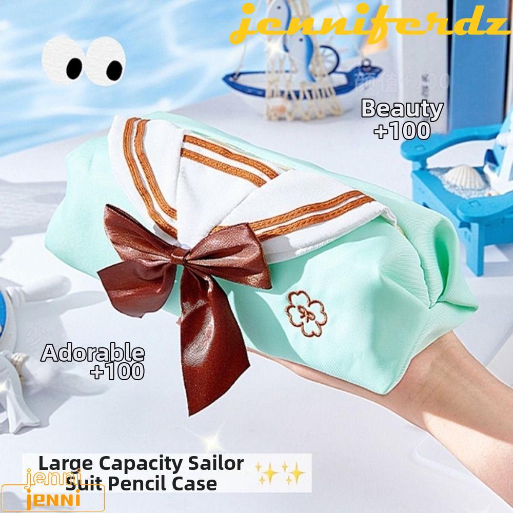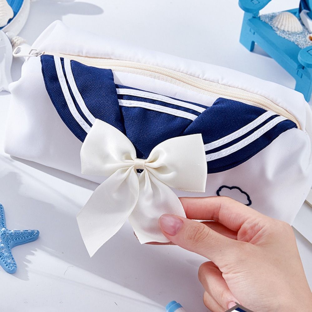 JENNIFERDZ JK Pencil Case, College Style Sweet Pencil Storage Bag, Sailor Theme Bow Tie Design Large Capacity Creative Makeup Bag Children
