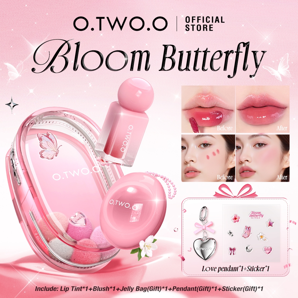【Shine for 9 Years!】O.TWO.O Bloom Butterfly Jelly Set Blush Mud+Kissproof Lip Tint Soft-Focus Effect