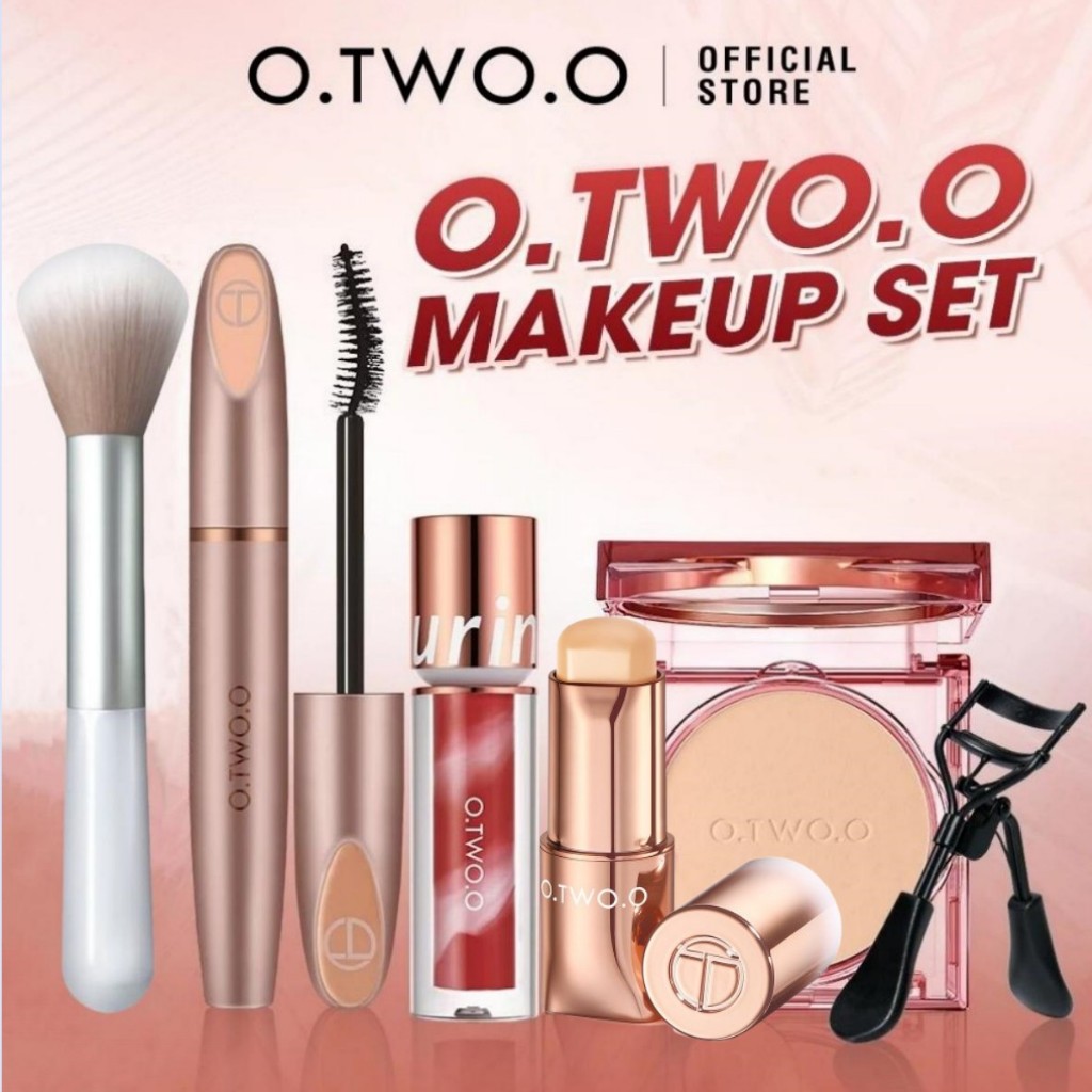 O.TWO.O Makeup Set Face Powder+Lipgloss+Blush Stick+Mascara Long Lasting 24h Locking Makeup