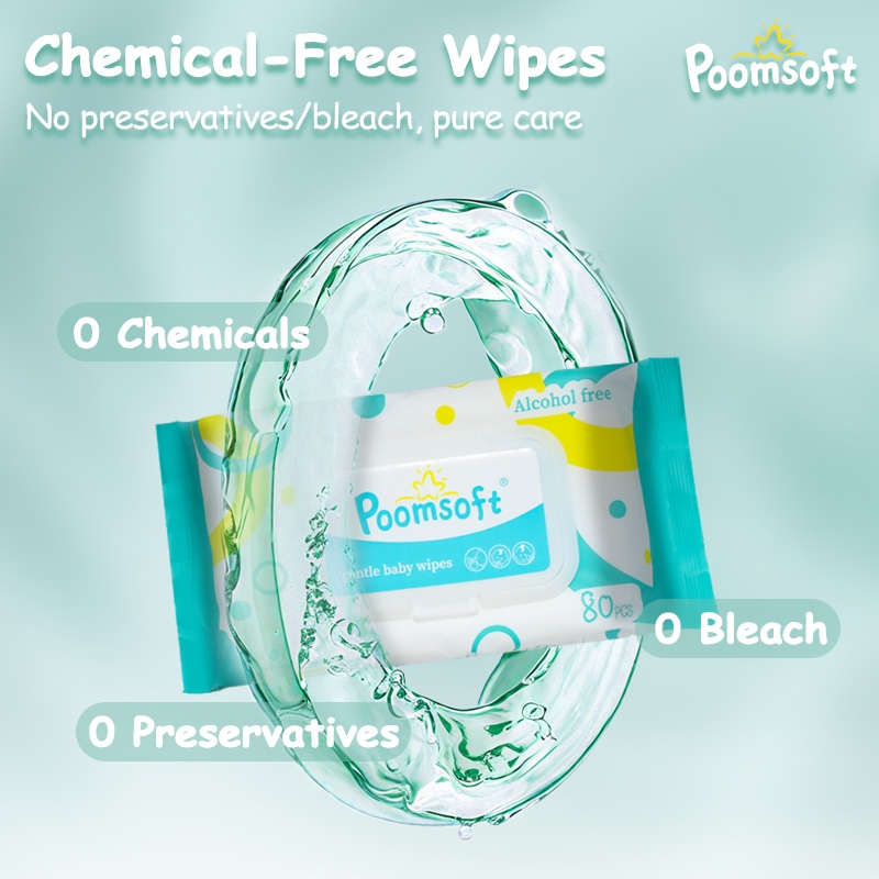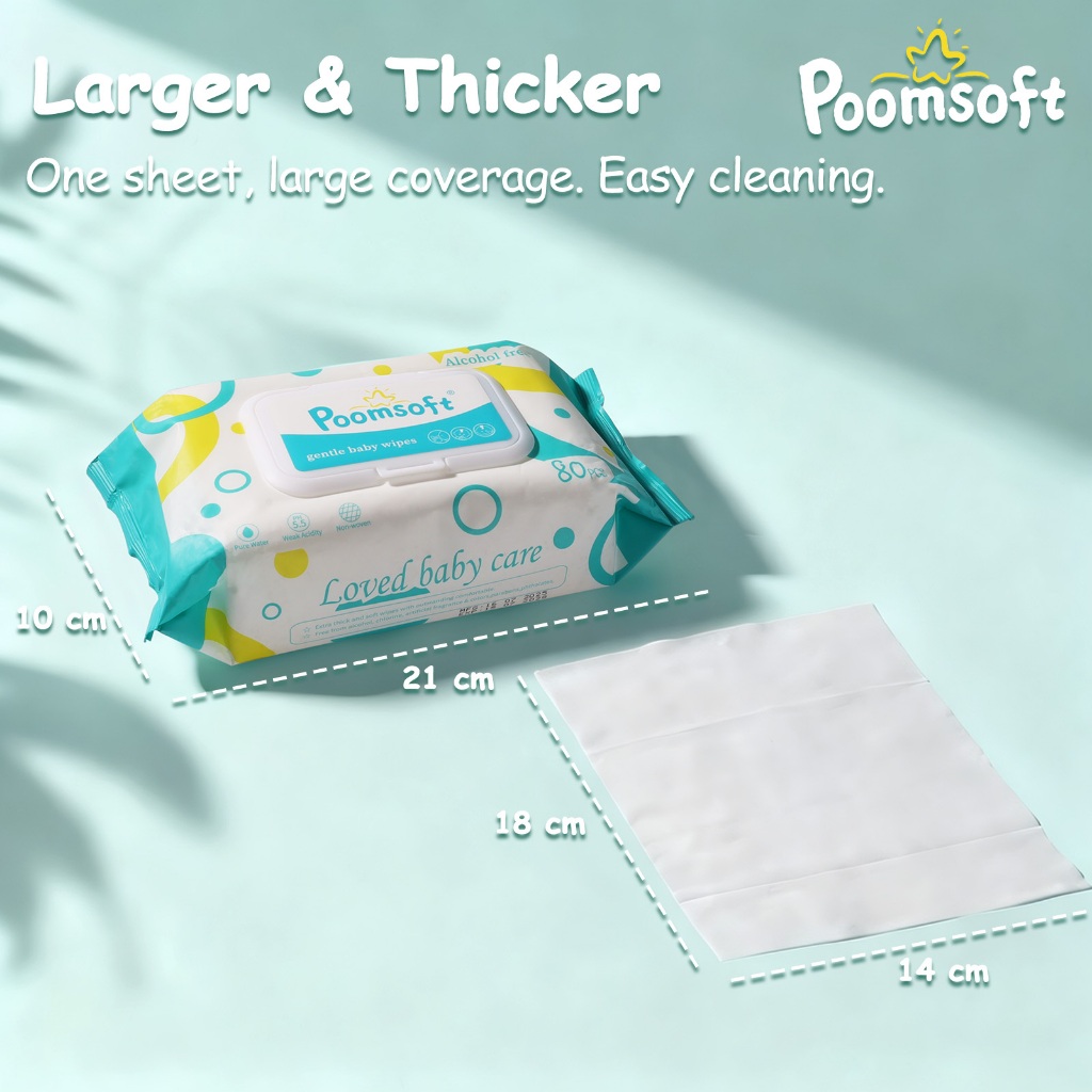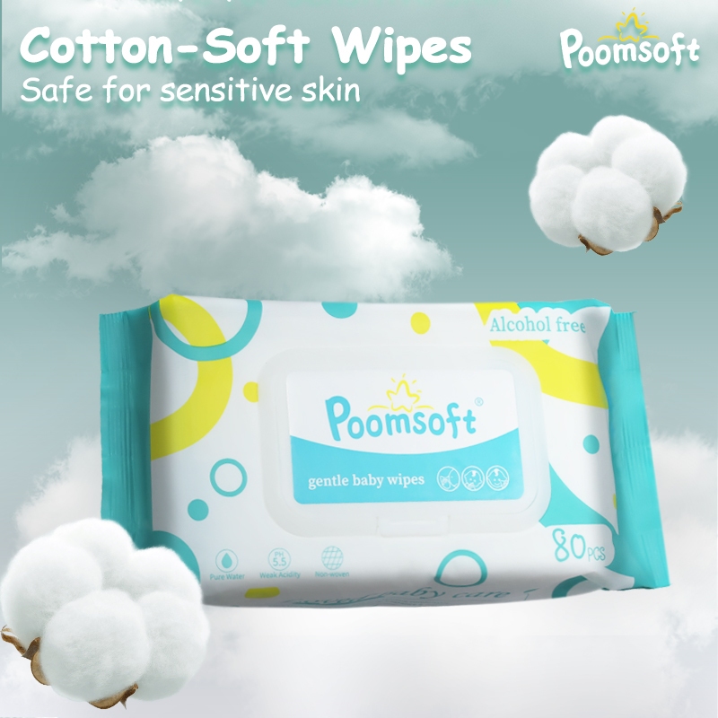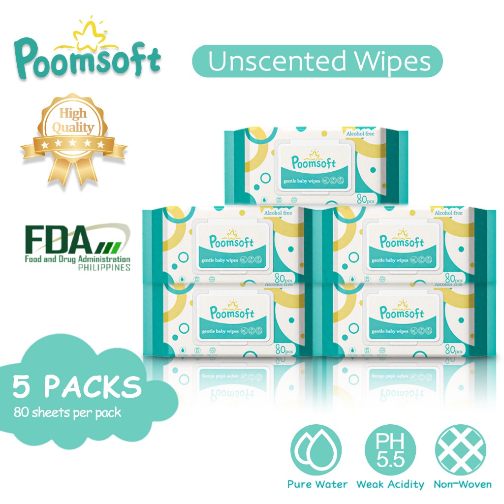 Poomsoft 5 Packs x 80 Sheet Unscented No-Alcohol Gentle Wipes Wet Tissue Baby FDA Approved
