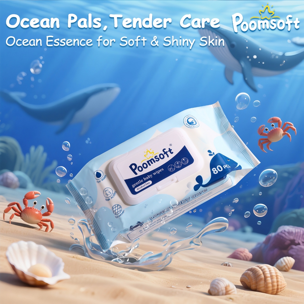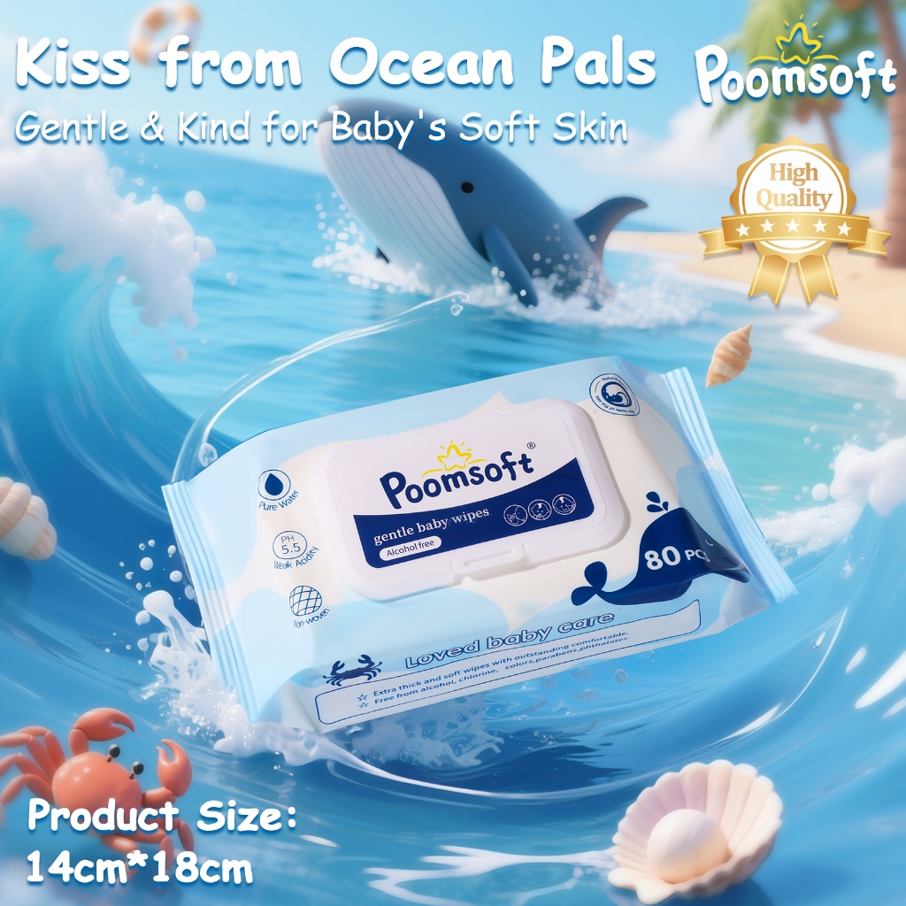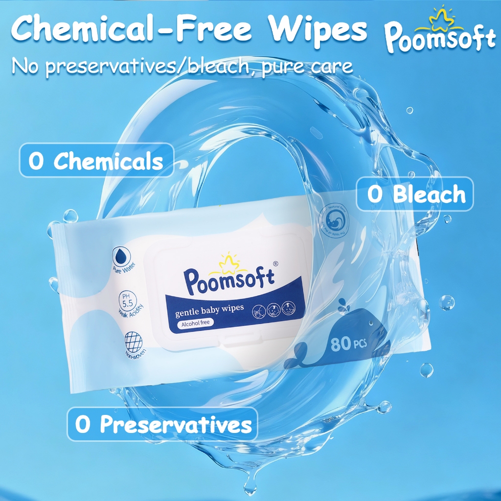 Poomsoft 5 Packs x 80 Sheet Powder Scented No-Alcohol Gentle Wipes For Baby Disposable Wet Wipes