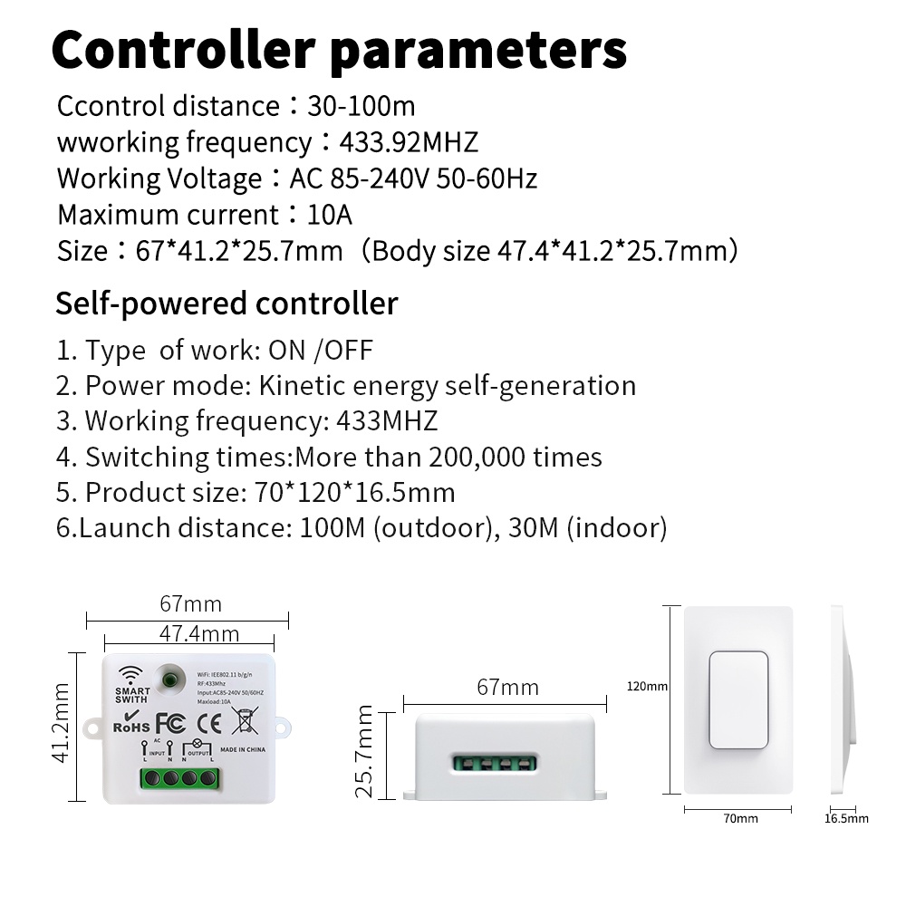 Smart switch Wireless Switch Wall Switch Waterproof Switch Retrofit Light Switch No Battery Required