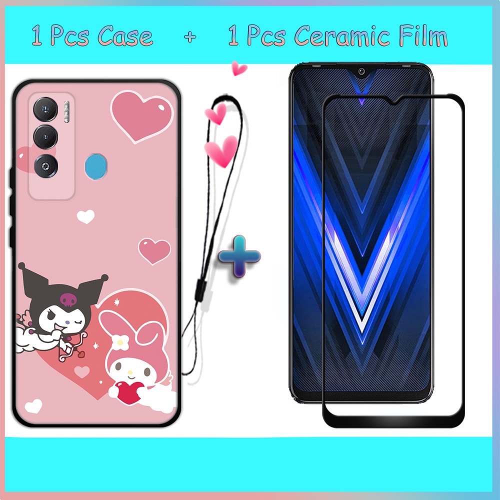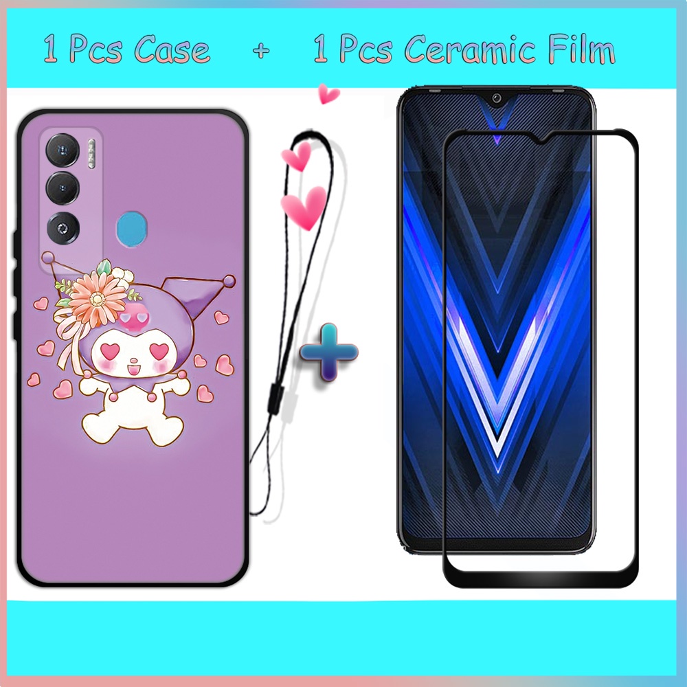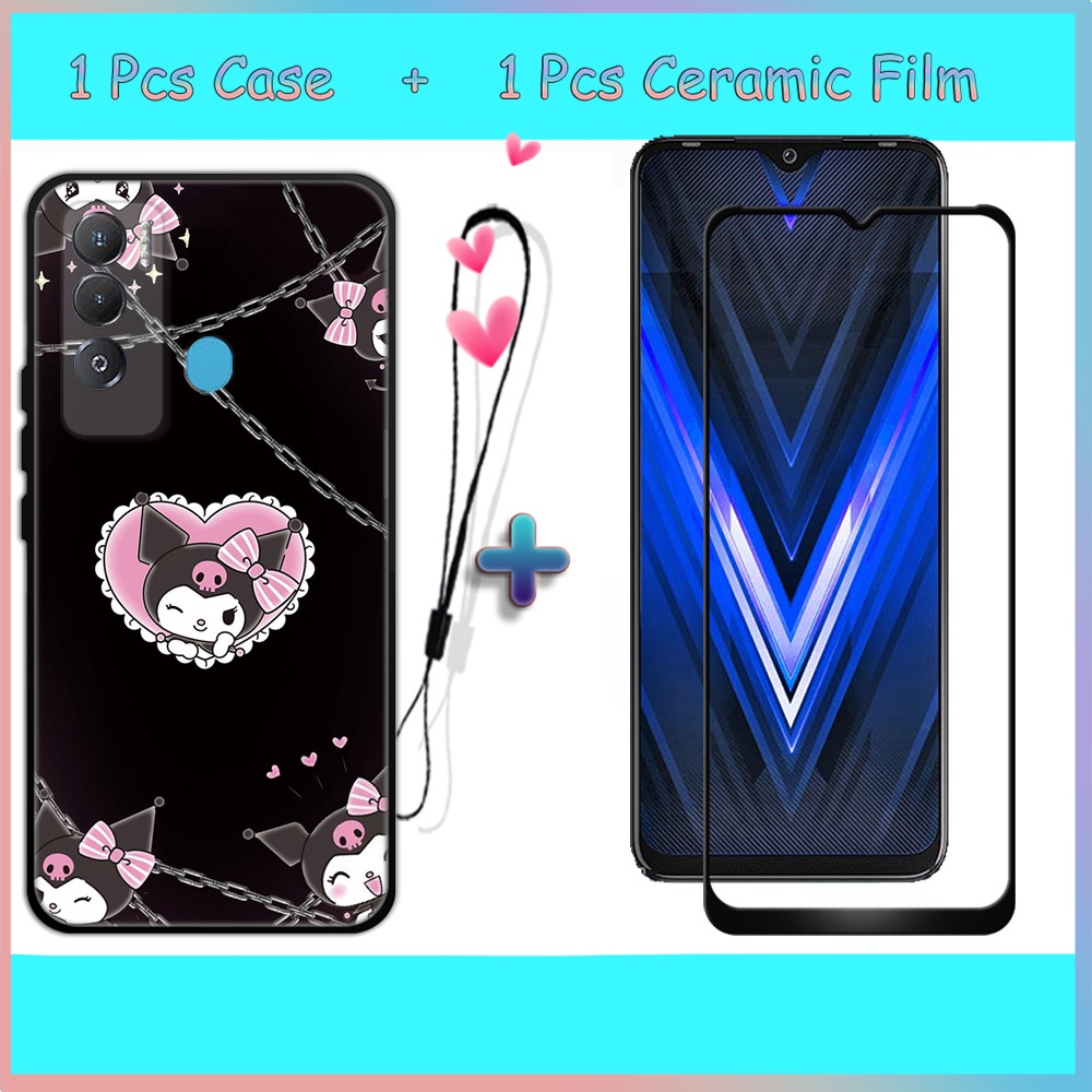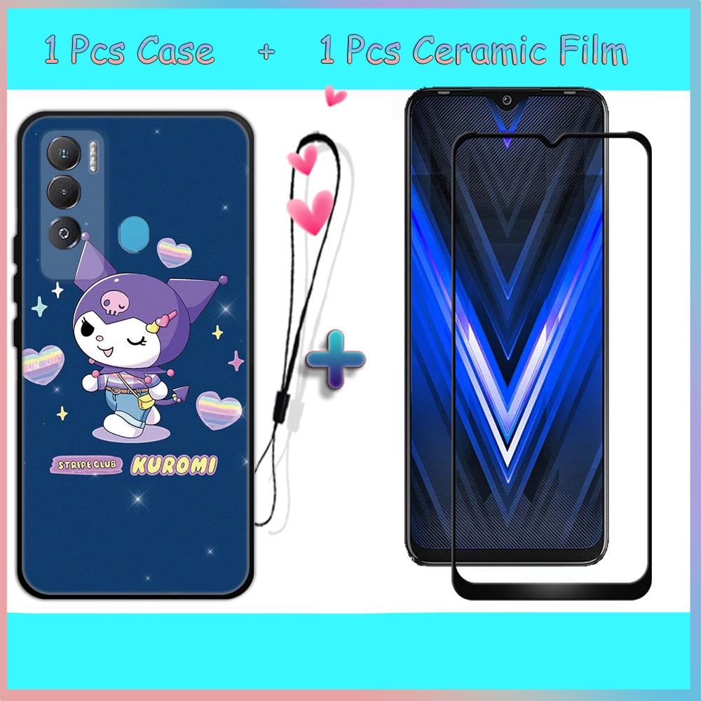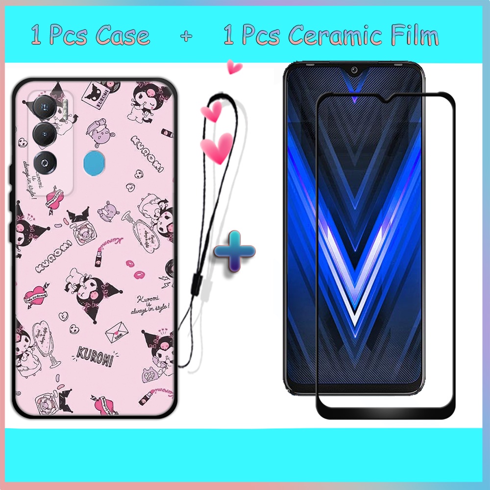 2 IN 1 For Tecno Pova Neo Case with Tempered Glass Ceramic Screen Protector Kuromi