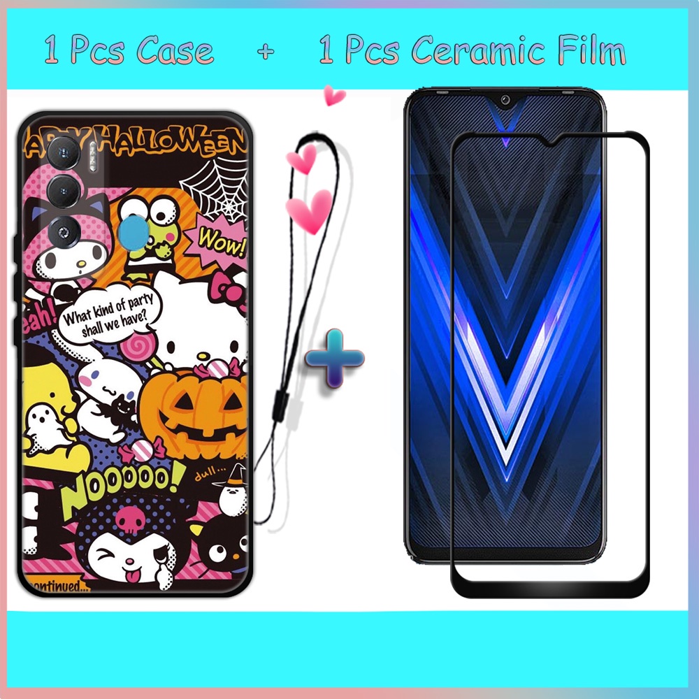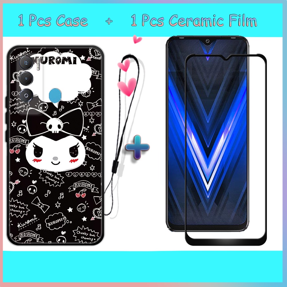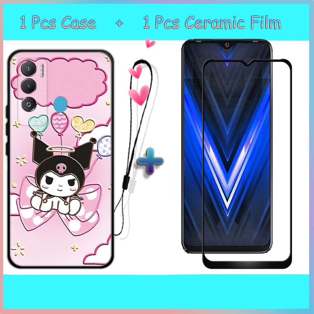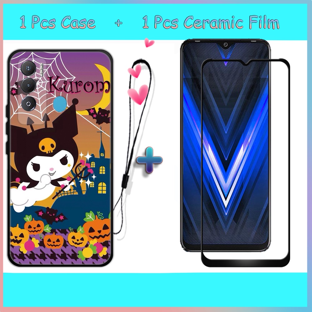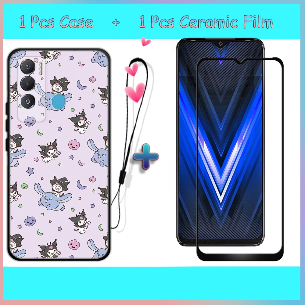 2 IN 1 For Tecno Pova Neo Case with Tempered Glass Ceramic Screen Protector Kuromi