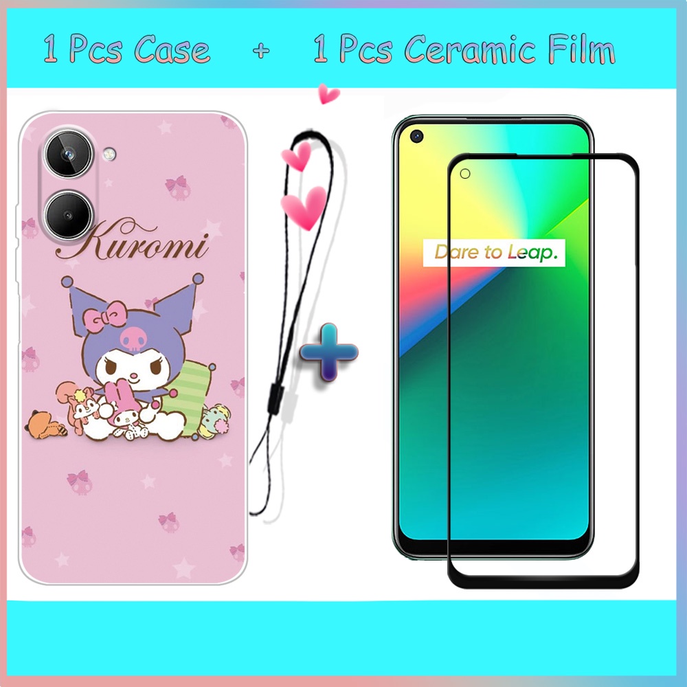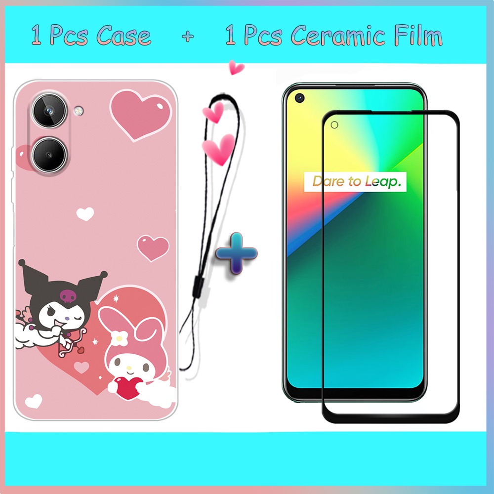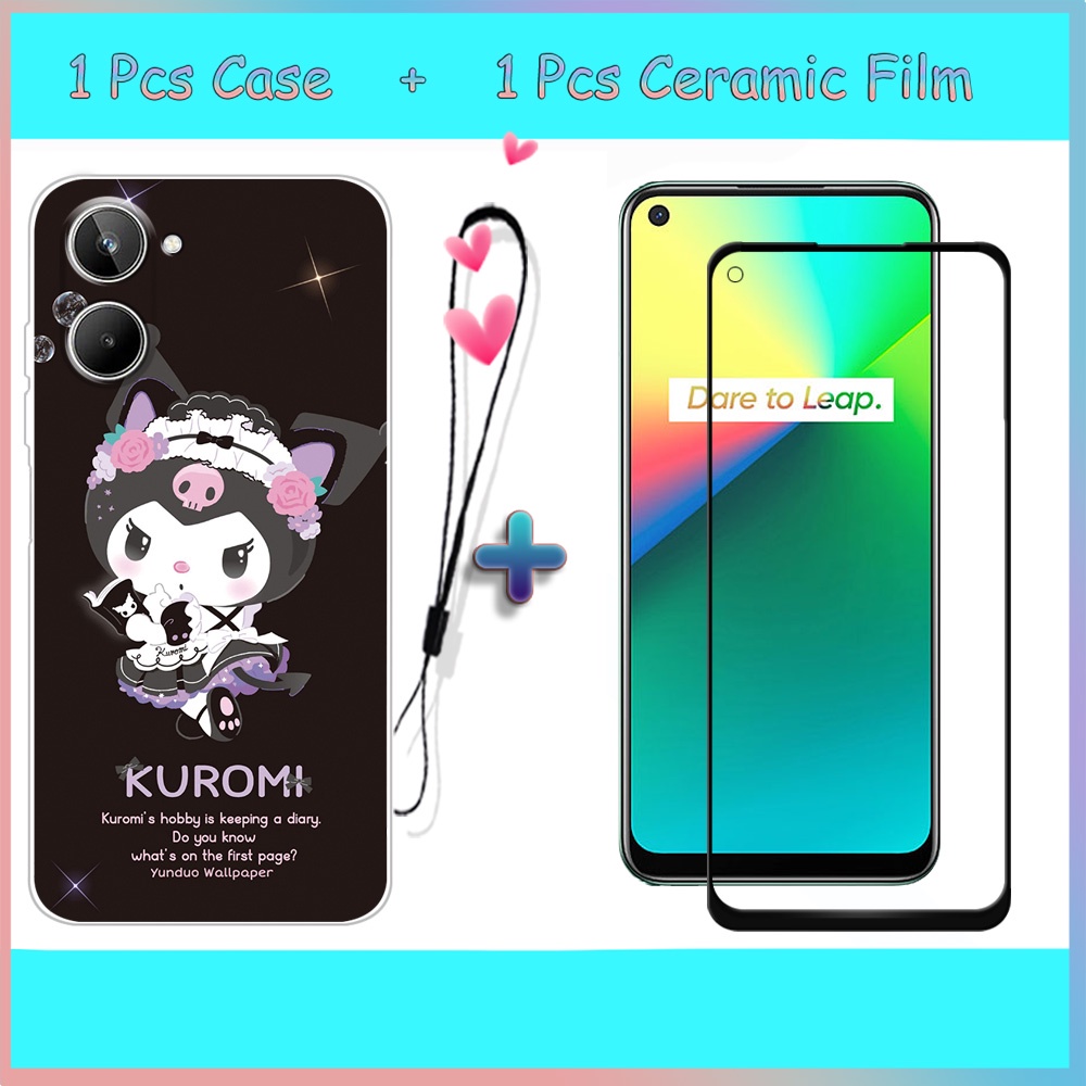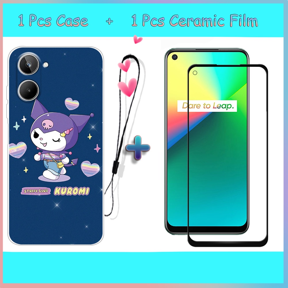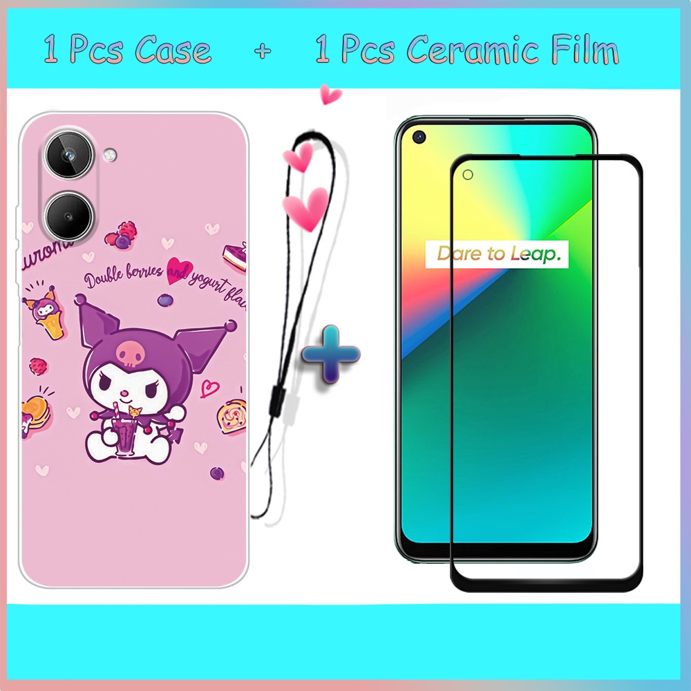2 IN 1 For Realme 10 4G Realme 10 5G Case with Tempered Glass Ceramic Screen Protector Kuromi