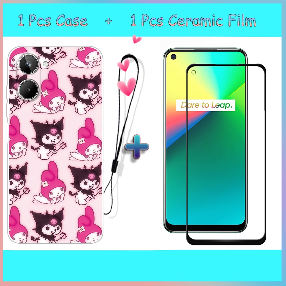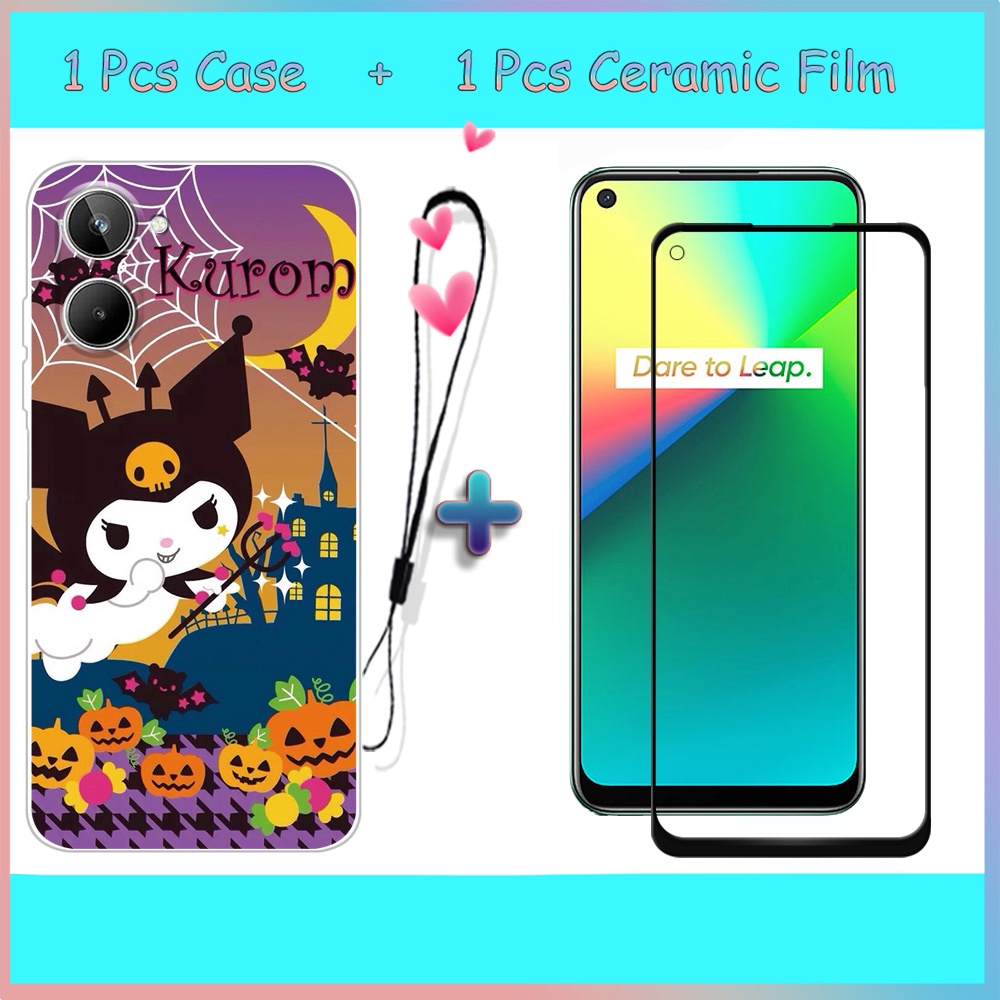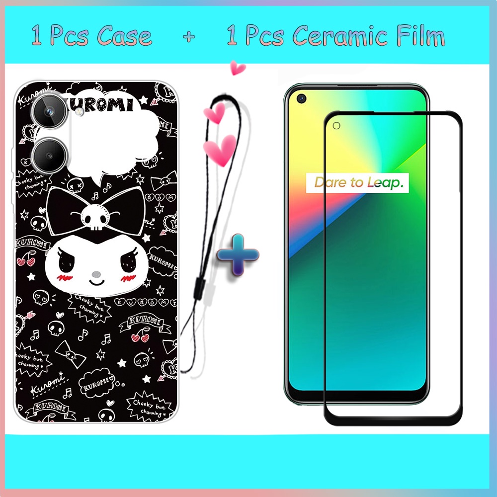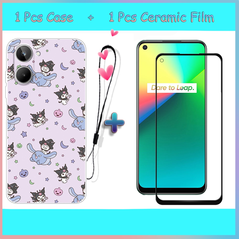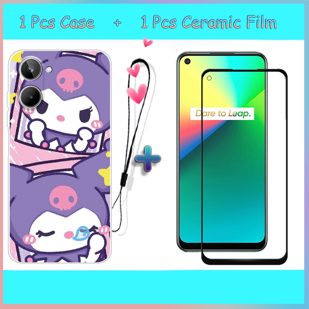 2 IN 1 For Realme 10 4G Realme 10 5G Case with Tempered Glass Ceramic Screen Protector Kuromi