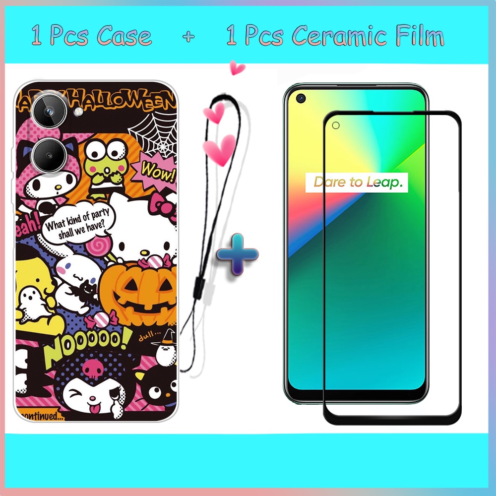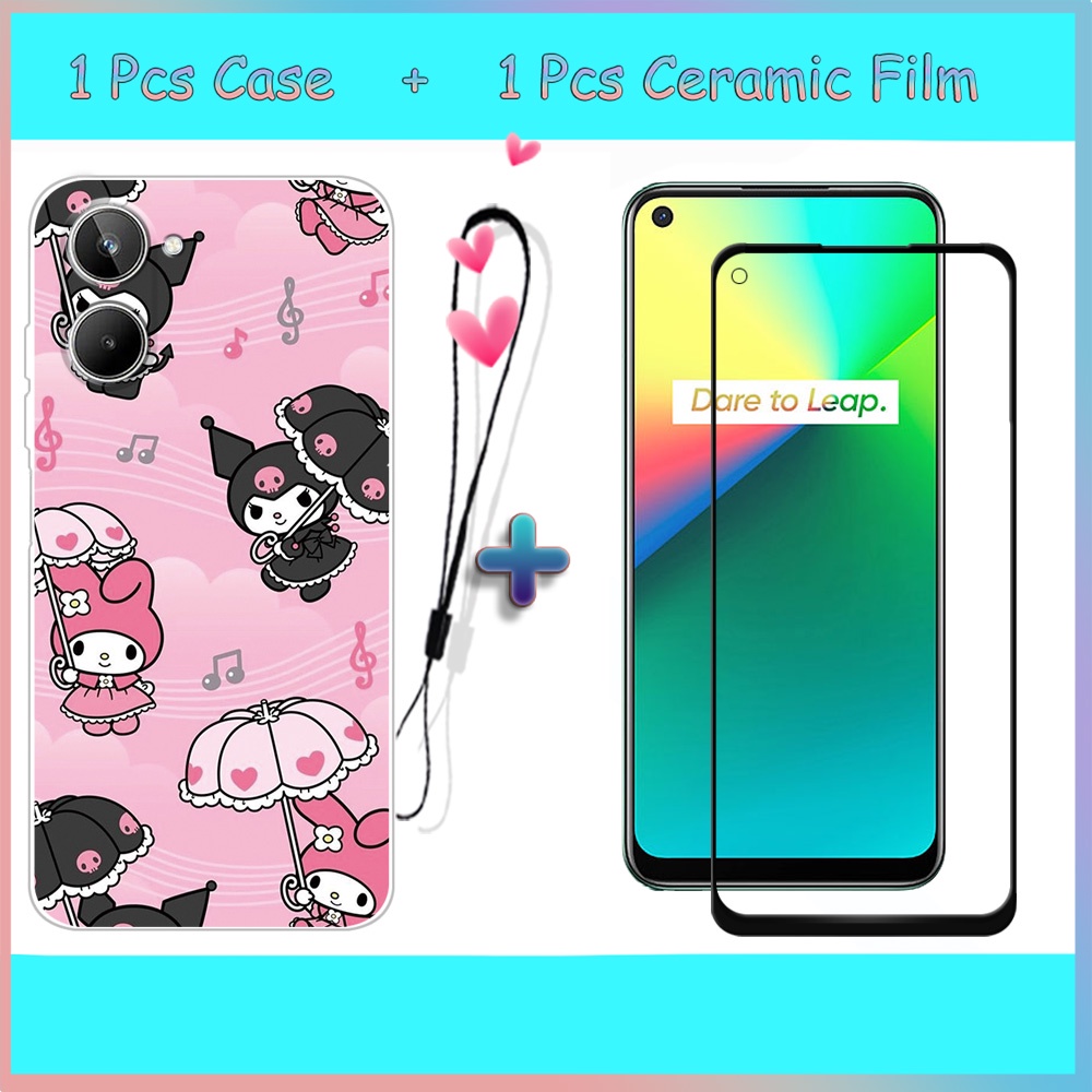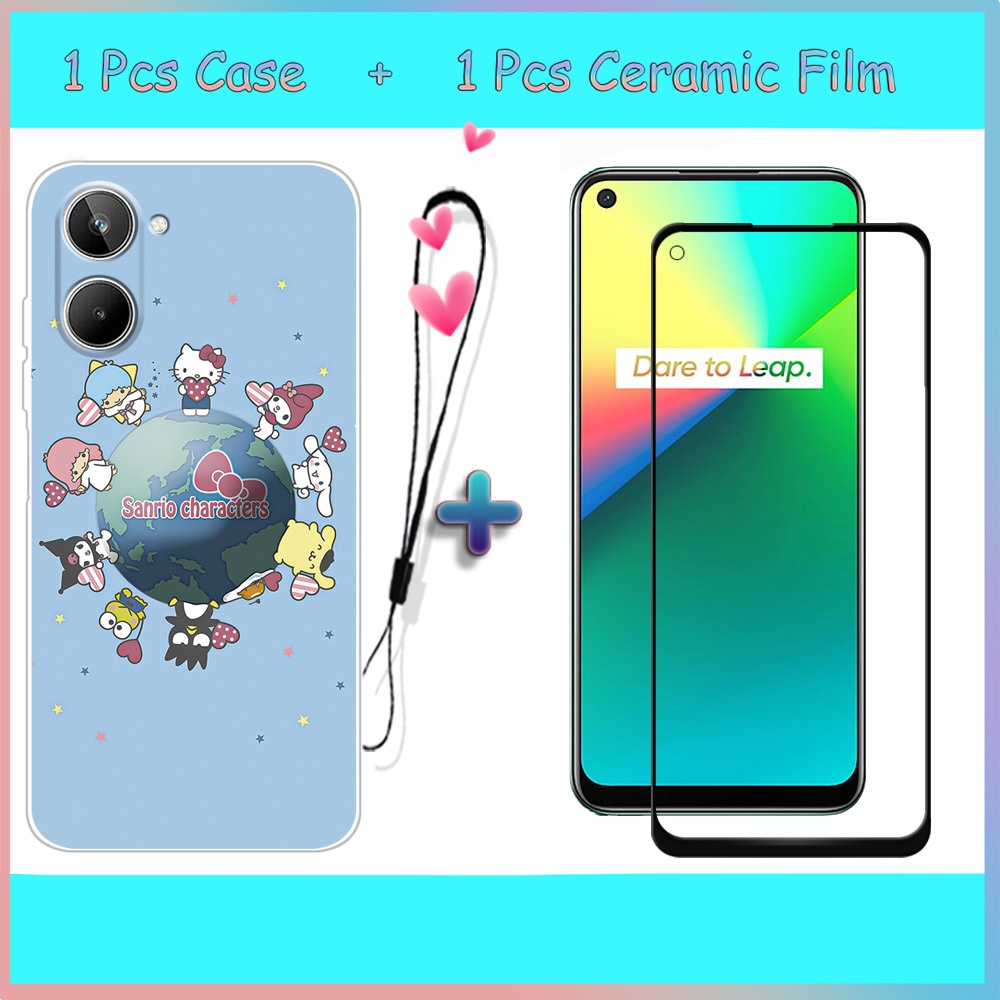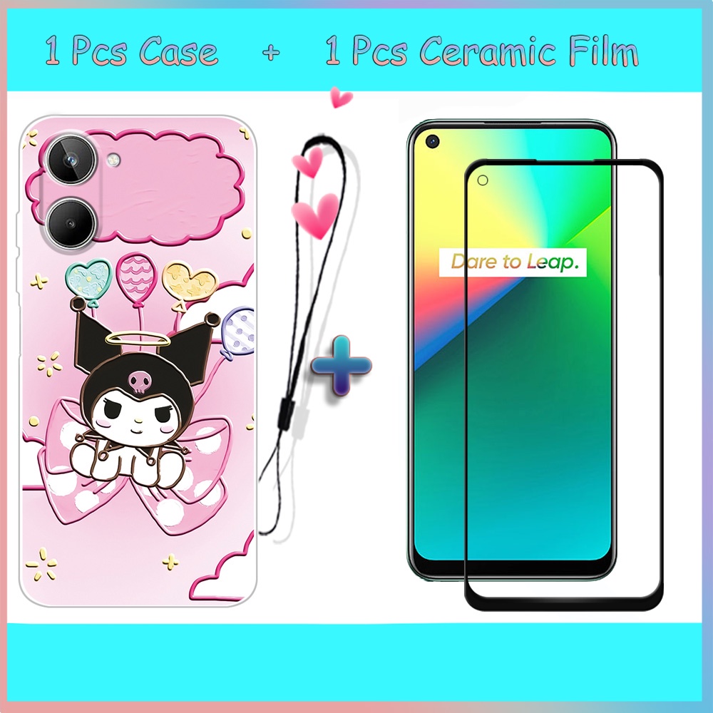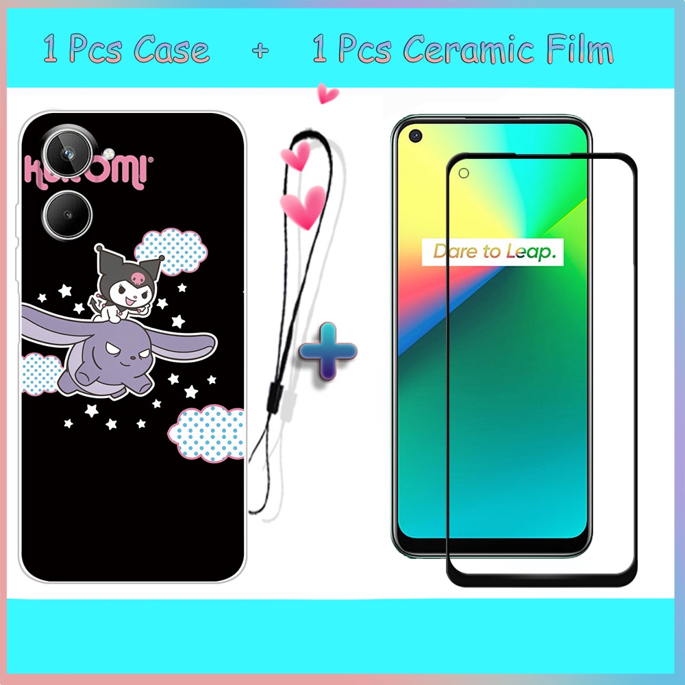 2 IN 1 For Realme 10 4G Realme 10 5G Case with Tempered Glass Ceramic Screen Protector Kuromi