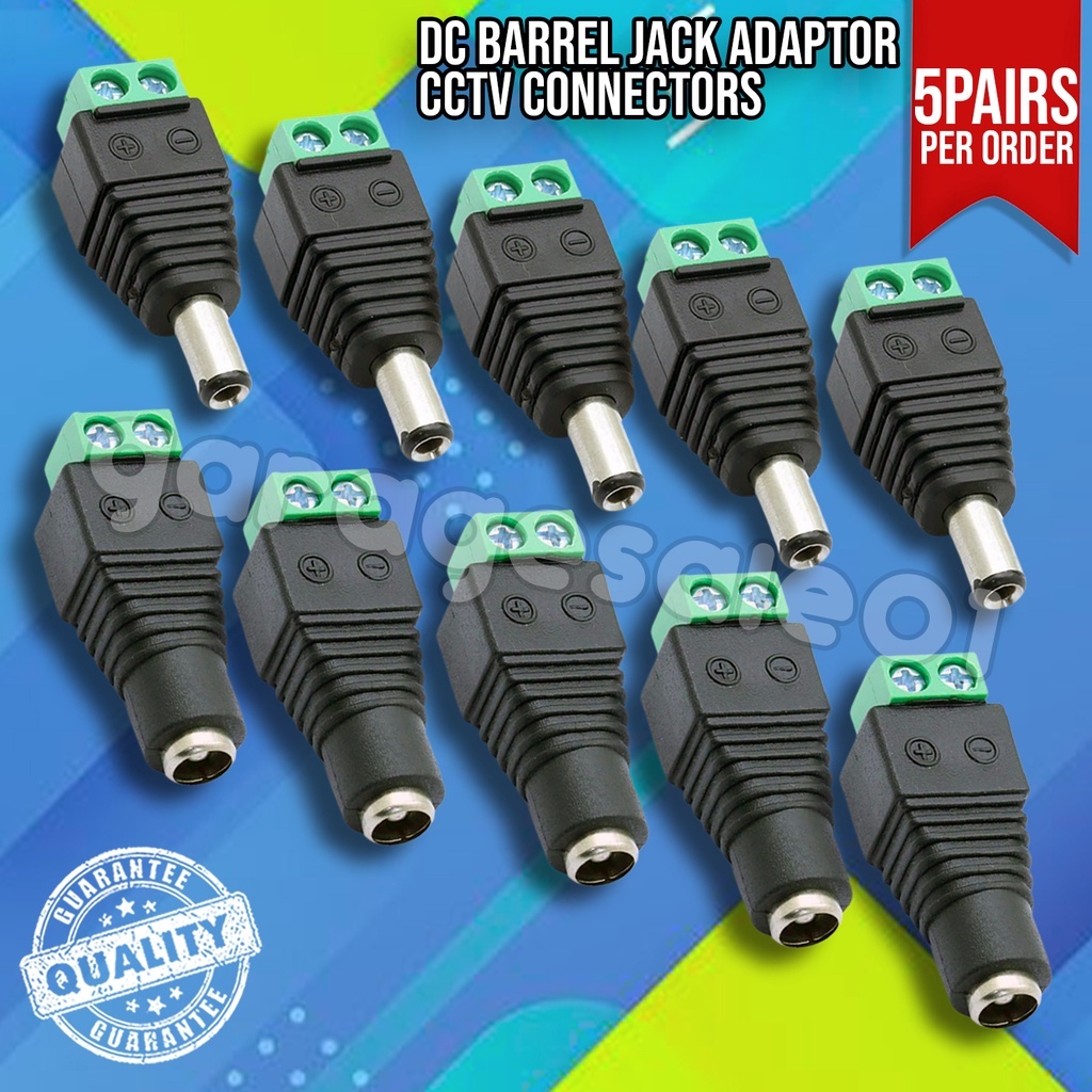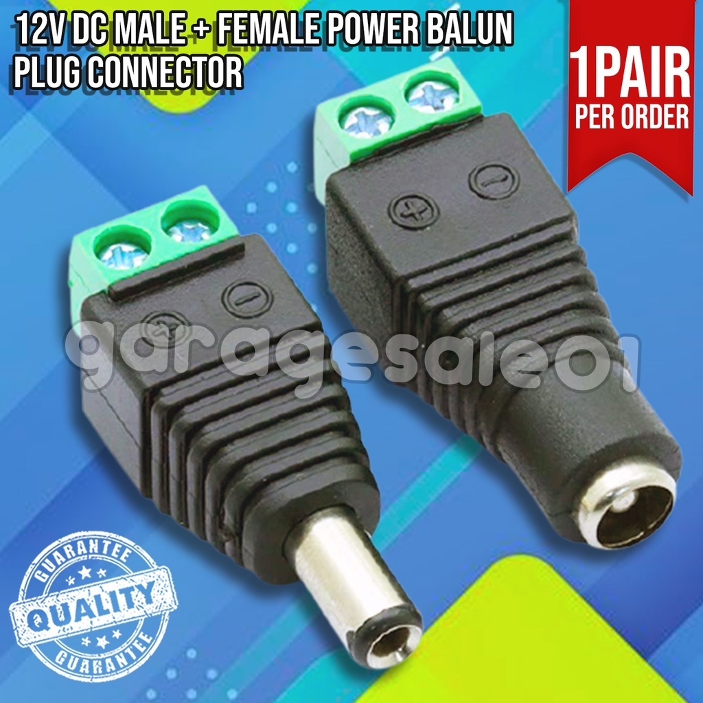 GS 12V DC Male & Female Power Balun Plug Connectors – 5 Pairs Quick Connect Adapter for CCTV Cameras