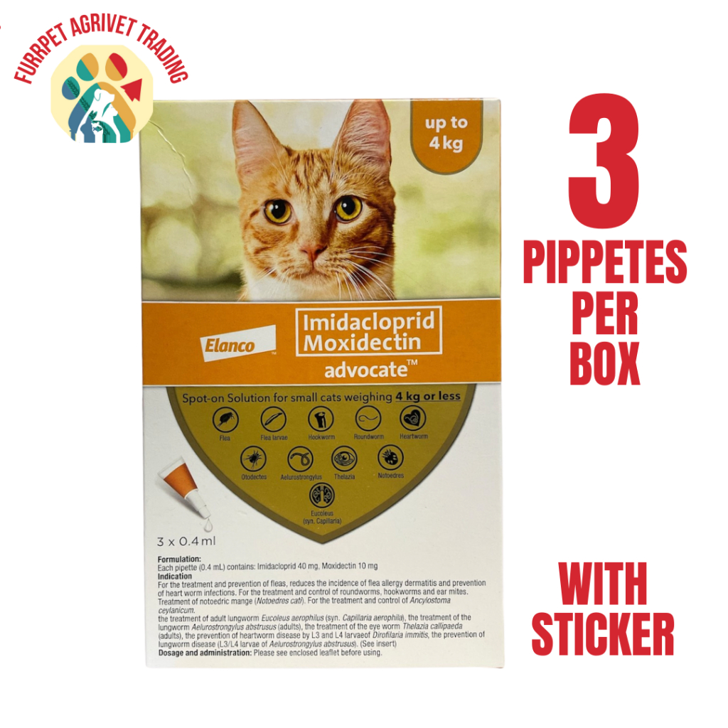 Advocate for Cats Up to 4kg Anti Fleas & Ear Mites Spot On w/ Sticker Elanco PER BOX