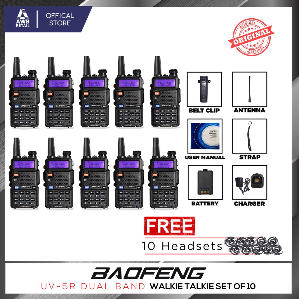 Baofeng/Platinum UV5R Walkie Talkie Dual Band Radio Set of 10 with Earpiece