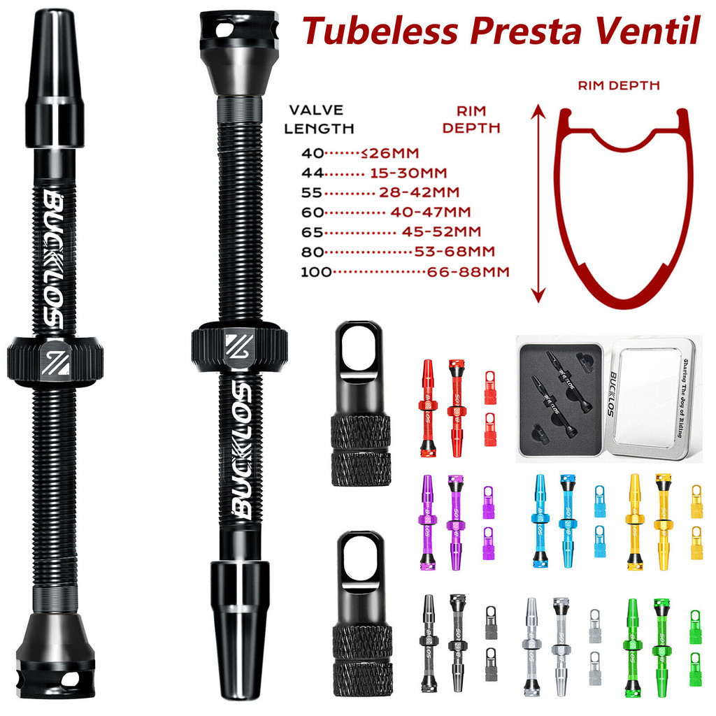 BUCKLOS 40mm/60mm/80mm Road Bike Tubeless Tire F/V Presta Valve for Mountain Road Bike Tubeless Rim Tire Core Aluminum