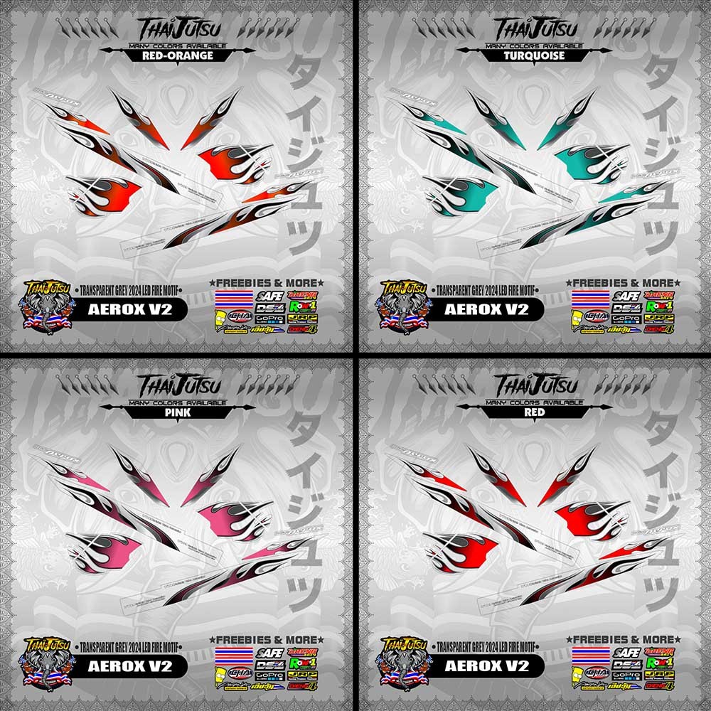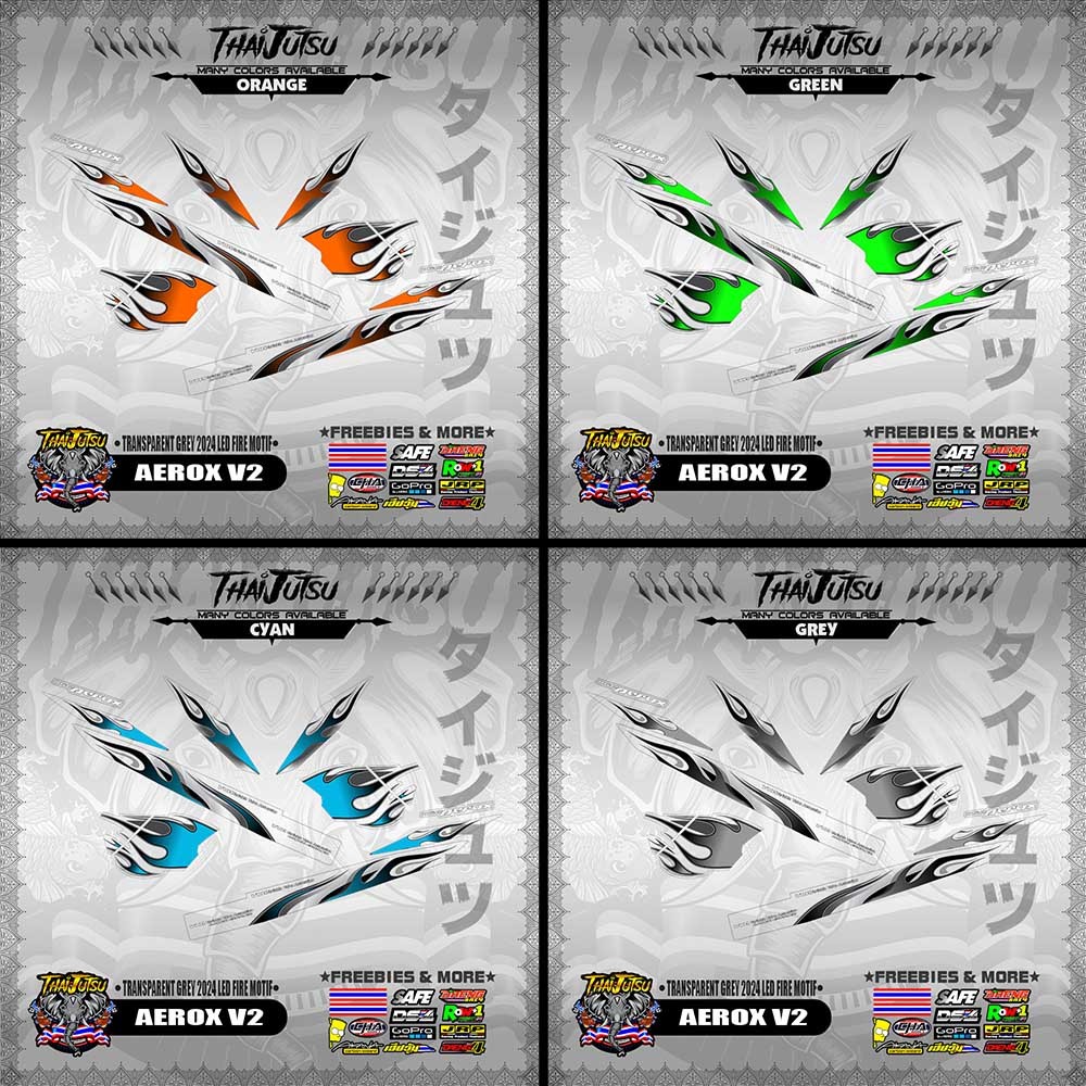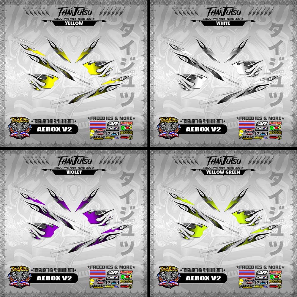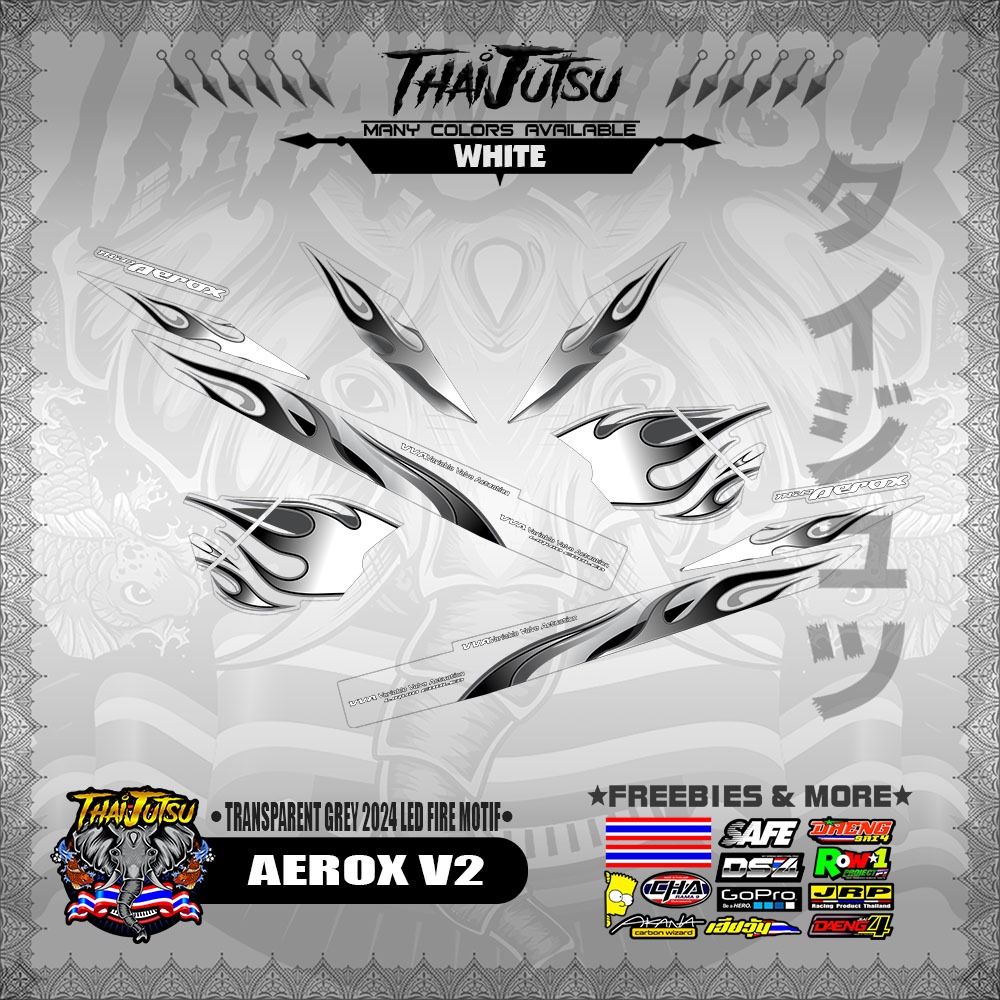 【PREMIUM UV PRINT】TRANSPARENT AEROX V2 DECALS ( GREY 2024 LED FIRE MOTIF )【ThaijutsuStickers】