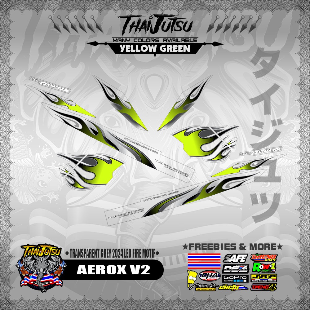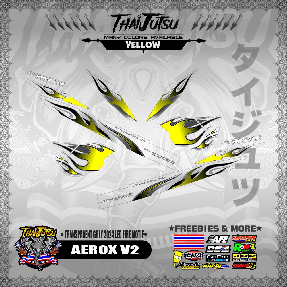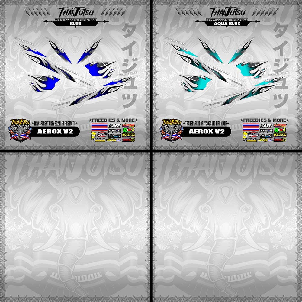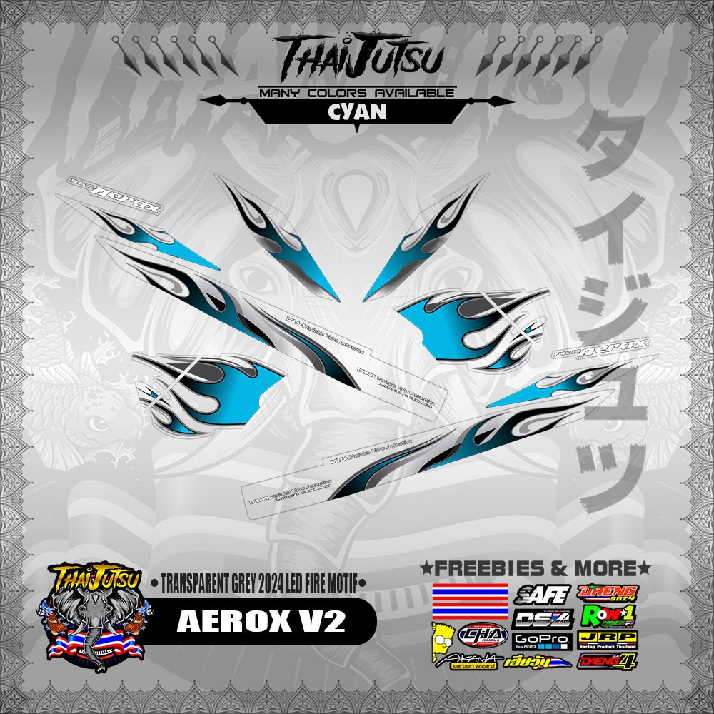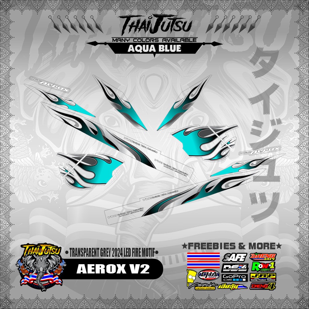 【PREMIUM UV PRINT】TRANSPARENT AEROX V2 DECALS ( GREY 2024 LED FIRE MOTIF )【ThaijutsuStickers】