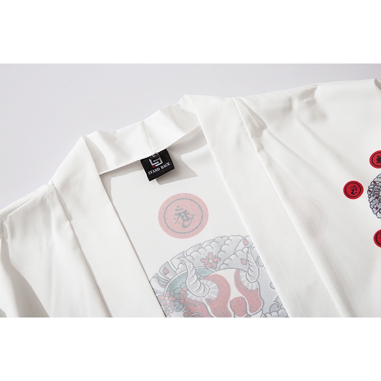 Ready Stock White Black Kimono Outer for Women Men Loose Harajuku Japanese Unisex Clothes