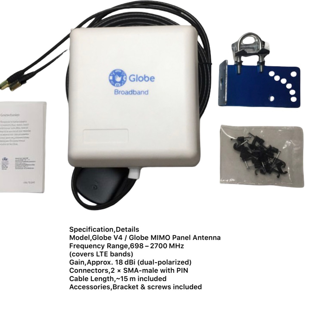 MIMO V4 LTE Panel Antenna for Globe/Smart | Dual Port 4G Signal Booster with 15M Cable