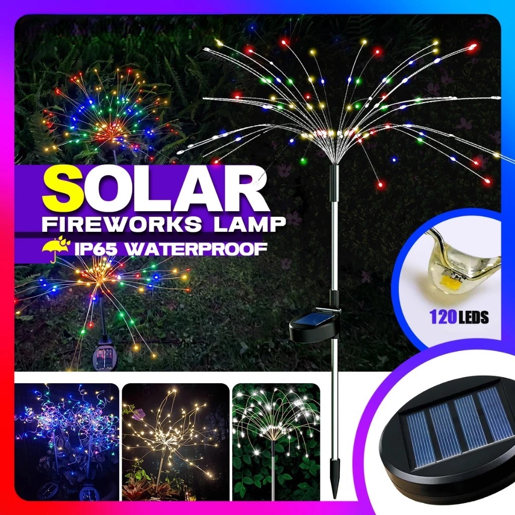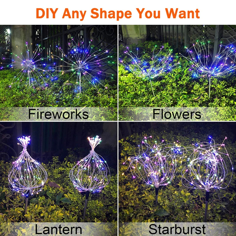 Solar Garden 120Lights Solar Firework Christmas Powered String Light with Twinkling and Steady-ON