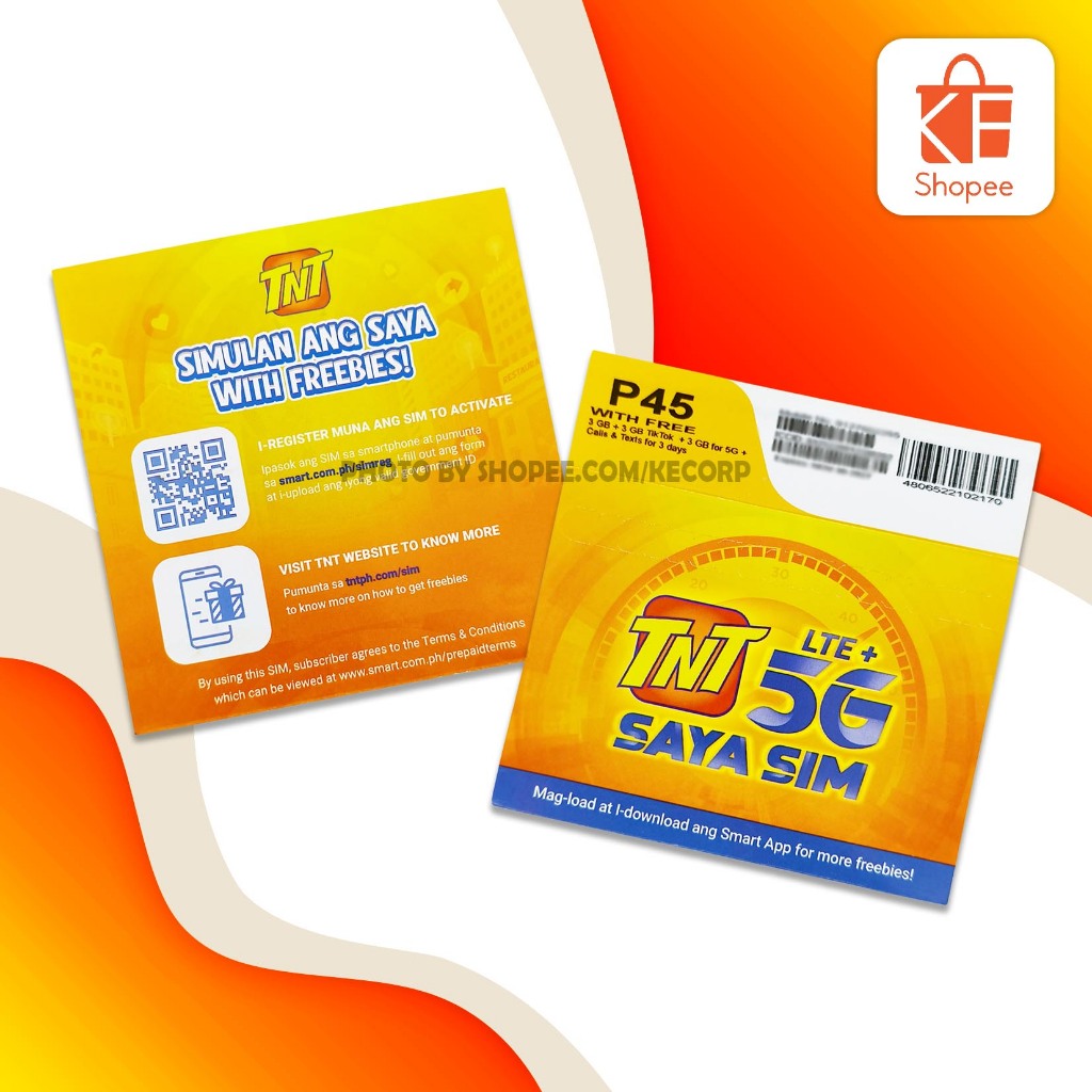 TNT Saya Sim 5G LTE with FREE 3gb + 3gb tiltok + 3gb for 5G + Call & Text for 3 days kcS11207