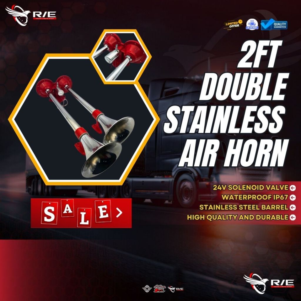 2ft and 3ft Double Barrel Mitsuba Pro Stainless Steel 2ft Air horn with Solenoid Valve