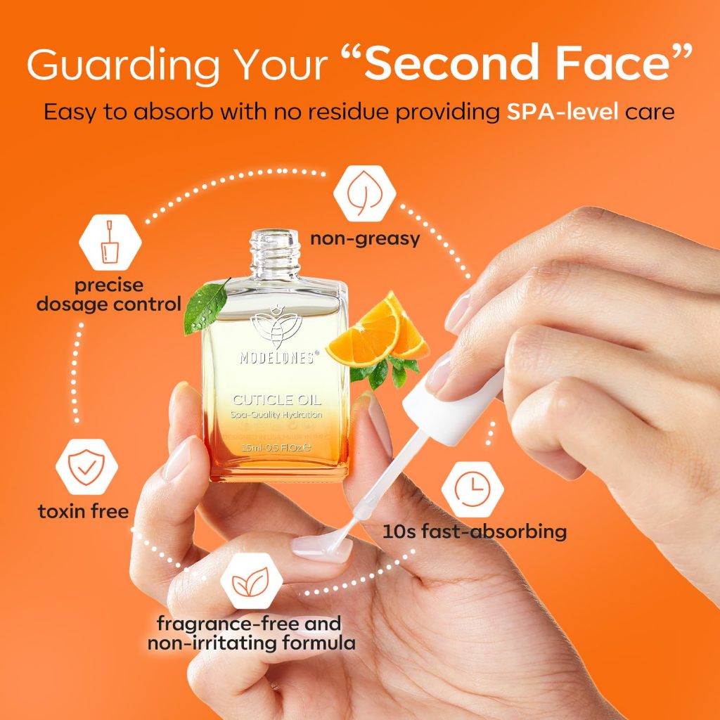 Modelones Cuticle Oil for Nails Orange Nail Oil for Growth&Strength Nail Growth Oil Cuticle Care15ml