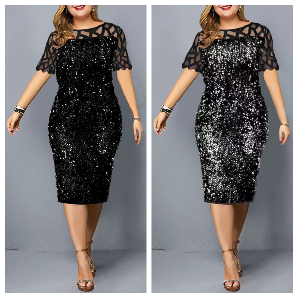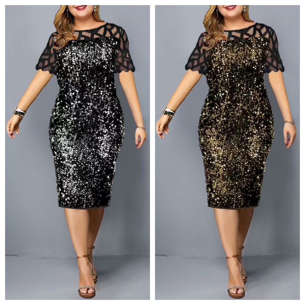 {Shipped From Manila+COD} Elegant Plus Size Sequin Glitter Cocktail Dress | Short Sleeves Evening Gown for Prom, Wedding, Ninang & Party | Glitz & Glamour Midi Dress | Shopee Philippines Best Seller