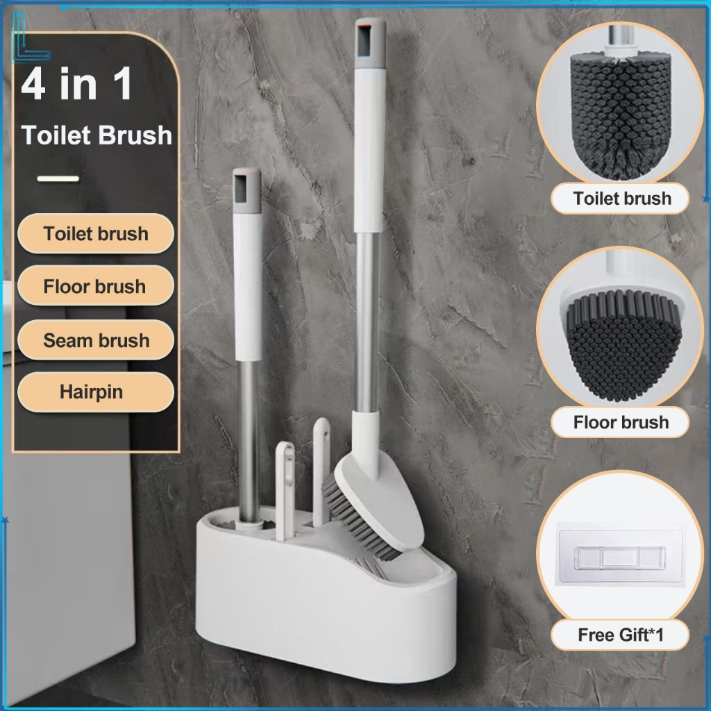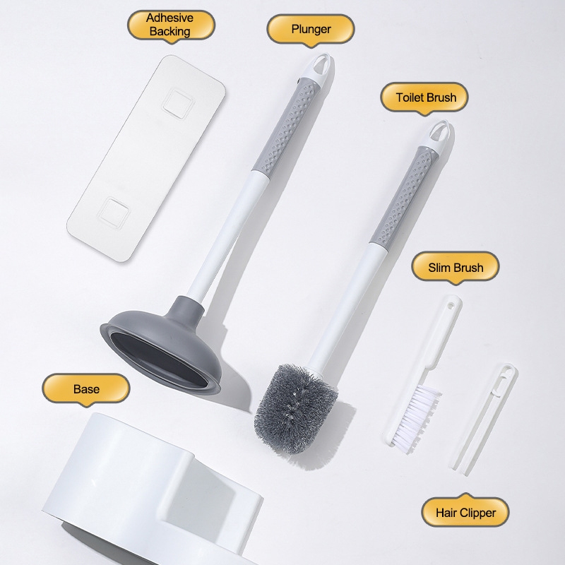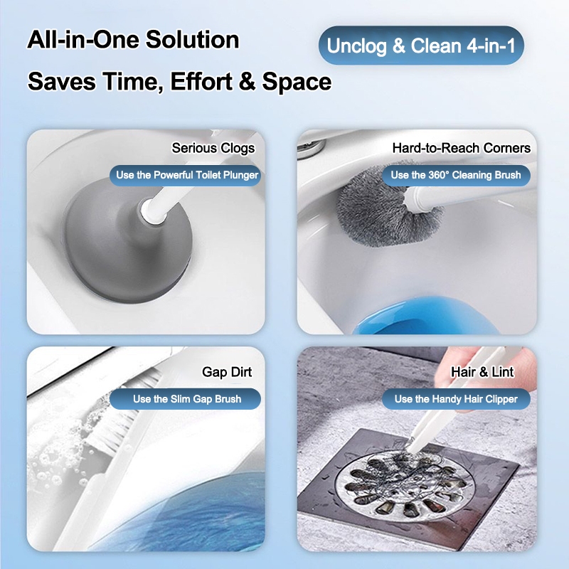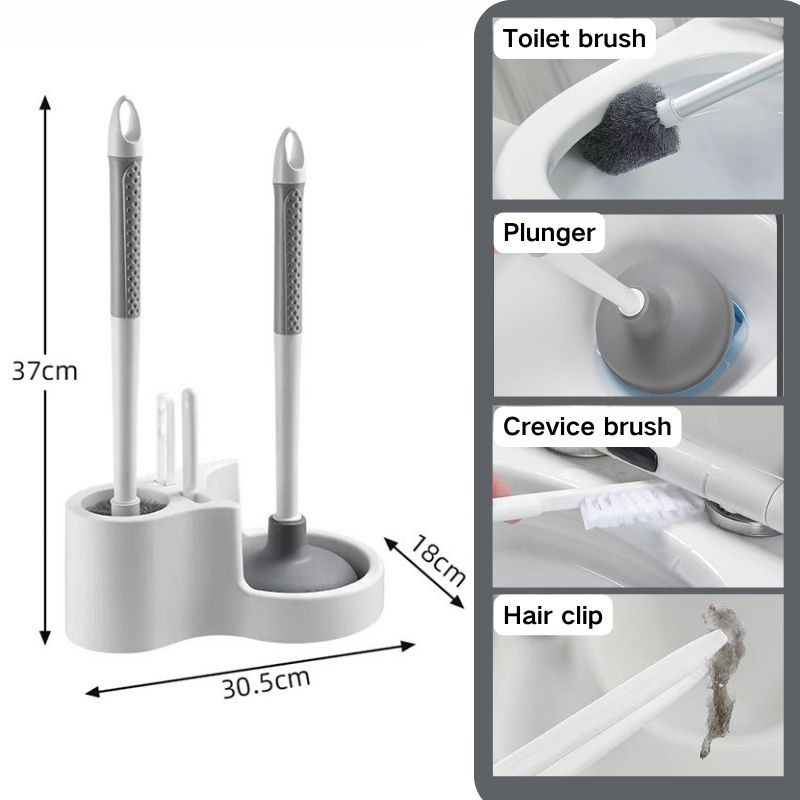 4 in 1 Brush for Bathroom Cleaning with Toilet Brush Plunger Hair Clipper and Gap Cleaning Brush