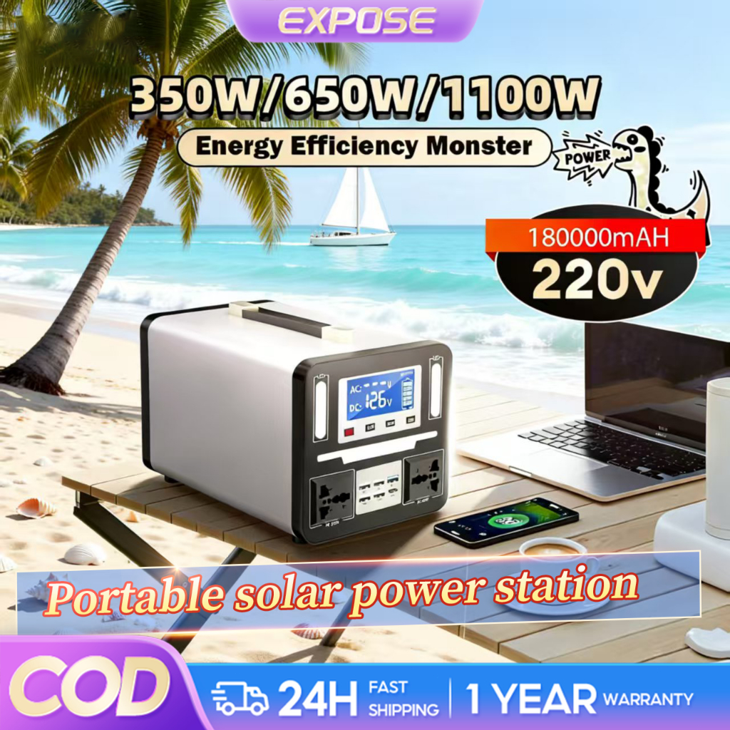 EXPOSE 1000W/220V 180000mAh Power Station With Solar Panel Big Capacity Portable Generator