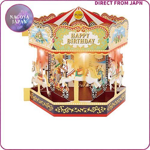 Sanrio Musical Birthday Card Merry-Go-Round Light-Up Premium Pop-Up Card Direct from Japan