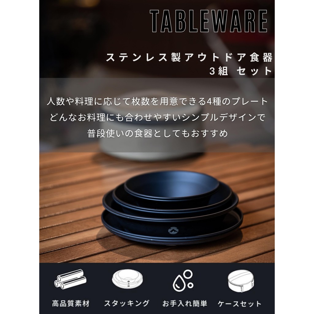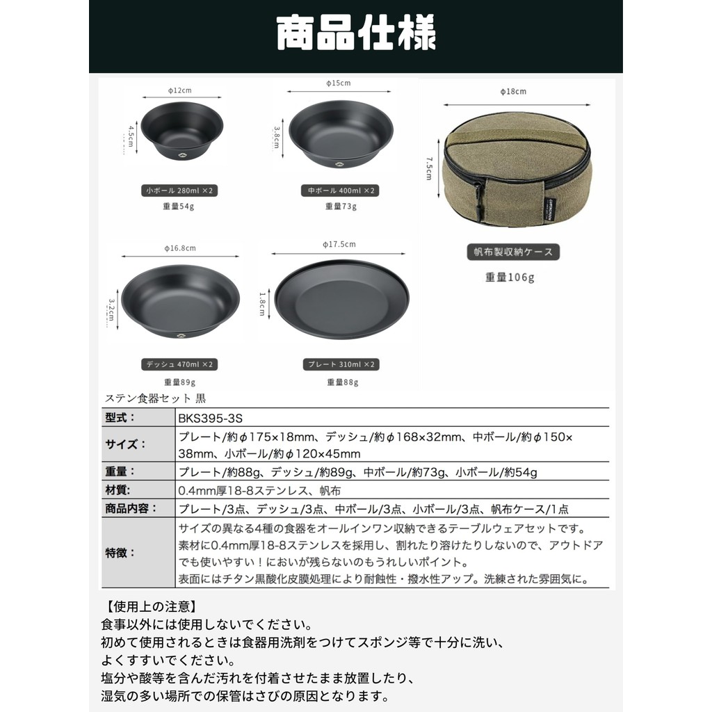 CAMPING MOON Tableware Camping Plate Stainless Steel Tableware Set with Canvas Case Black BKS395 (Direct from Japan)