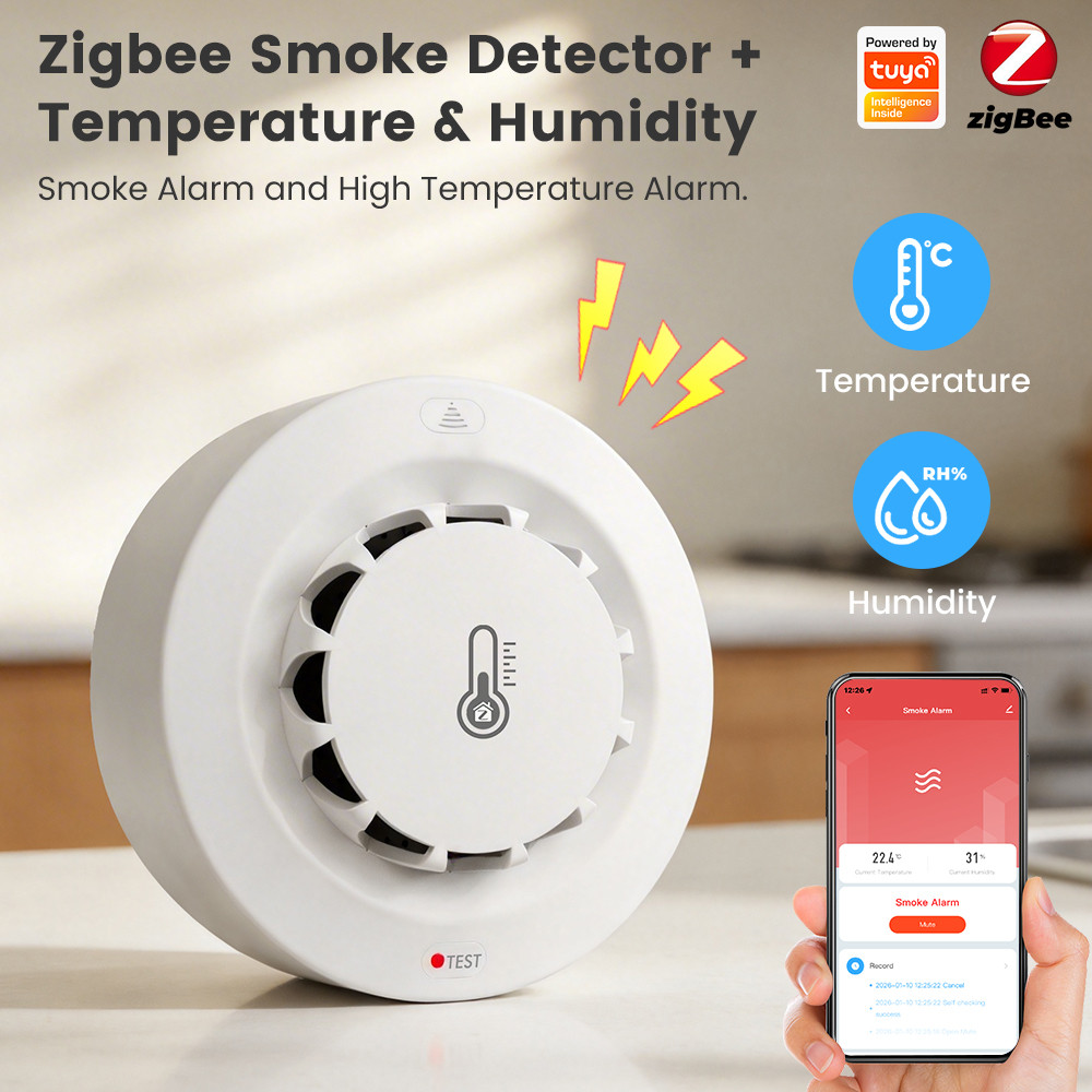 SMATRUL Tuya Zigbee Smart Smoke Alarm Fire Temperature And Humidity Sensor Detection Hygrometer Thermometer Tuya App Smart Life Home Security System Firefighter