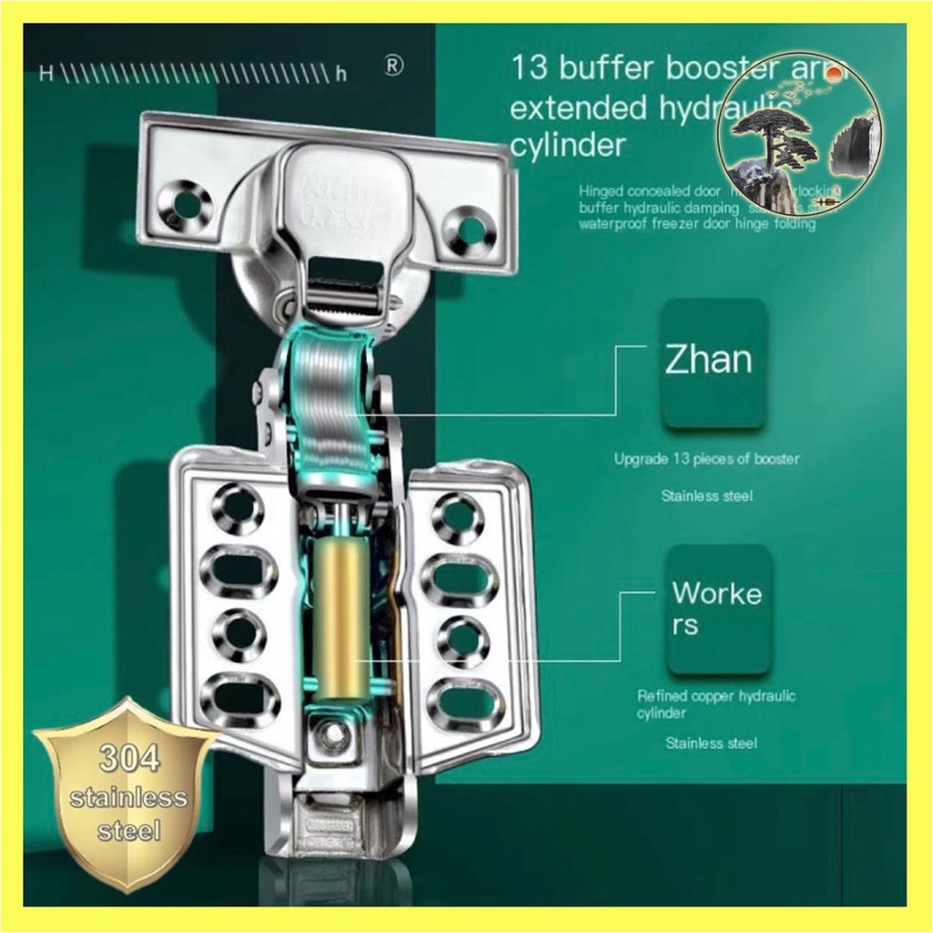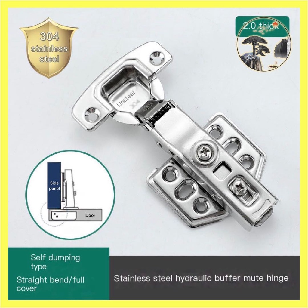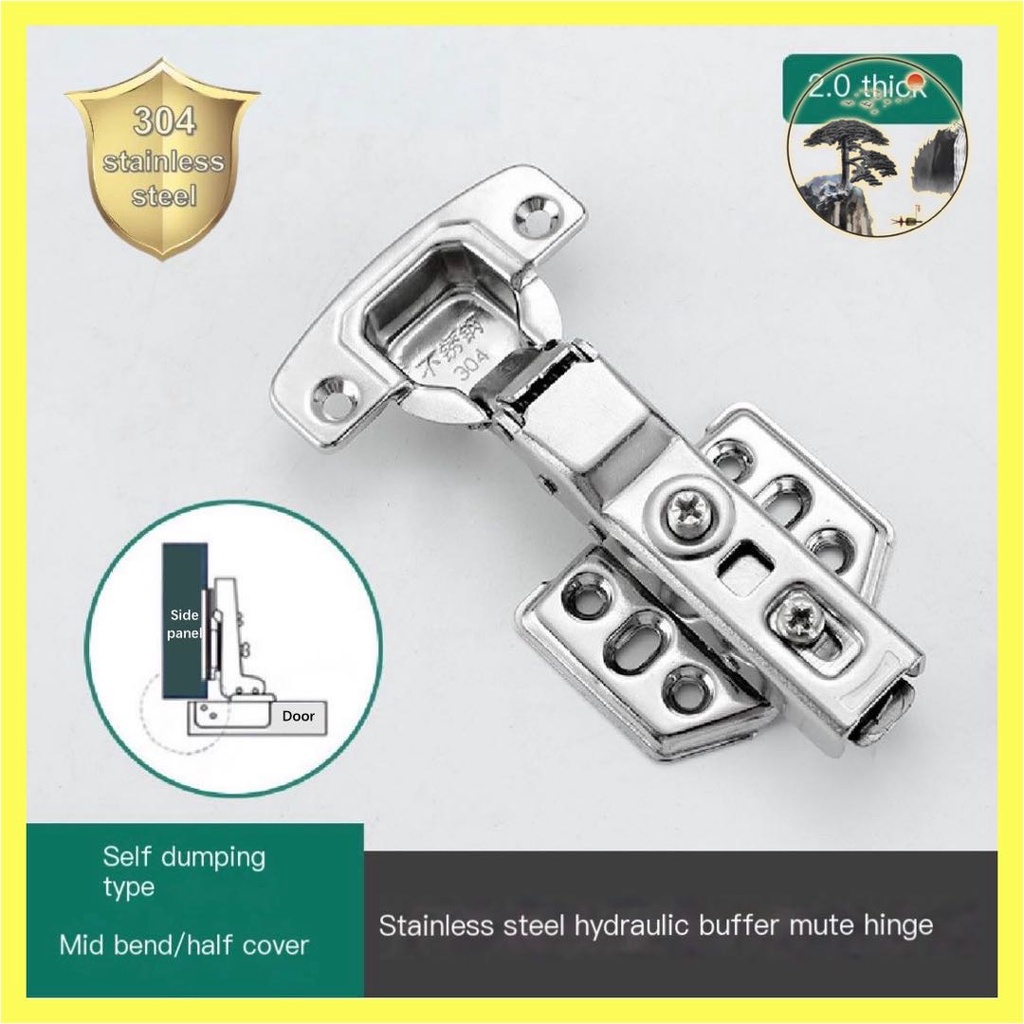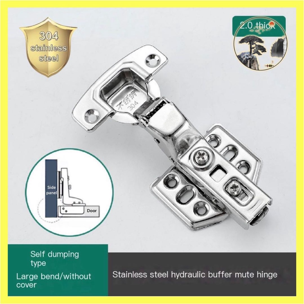 (2pcs)2.0thick 304Stainless steel Hydraulic Soft Close Concealed Cabinet Hinge Super quiet removable