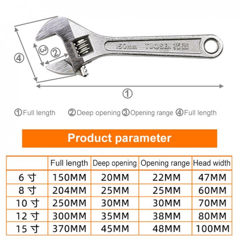 Adjustable wrench 6/8/10/12 inch forged wrench manual fast live wrench opening adjustable wrench