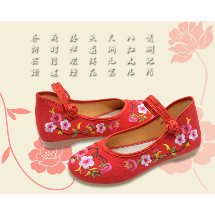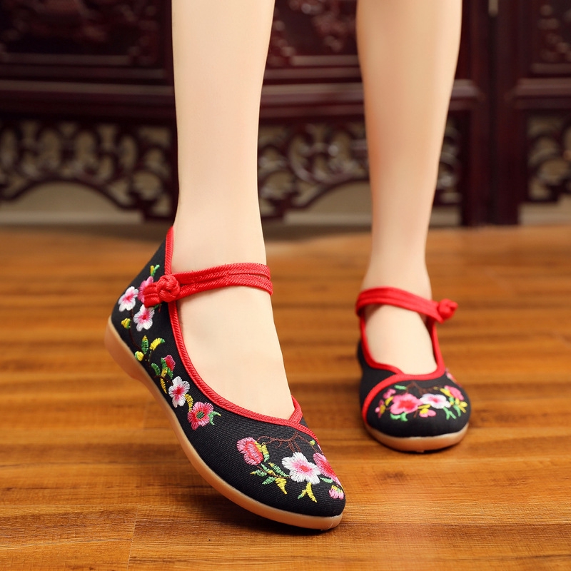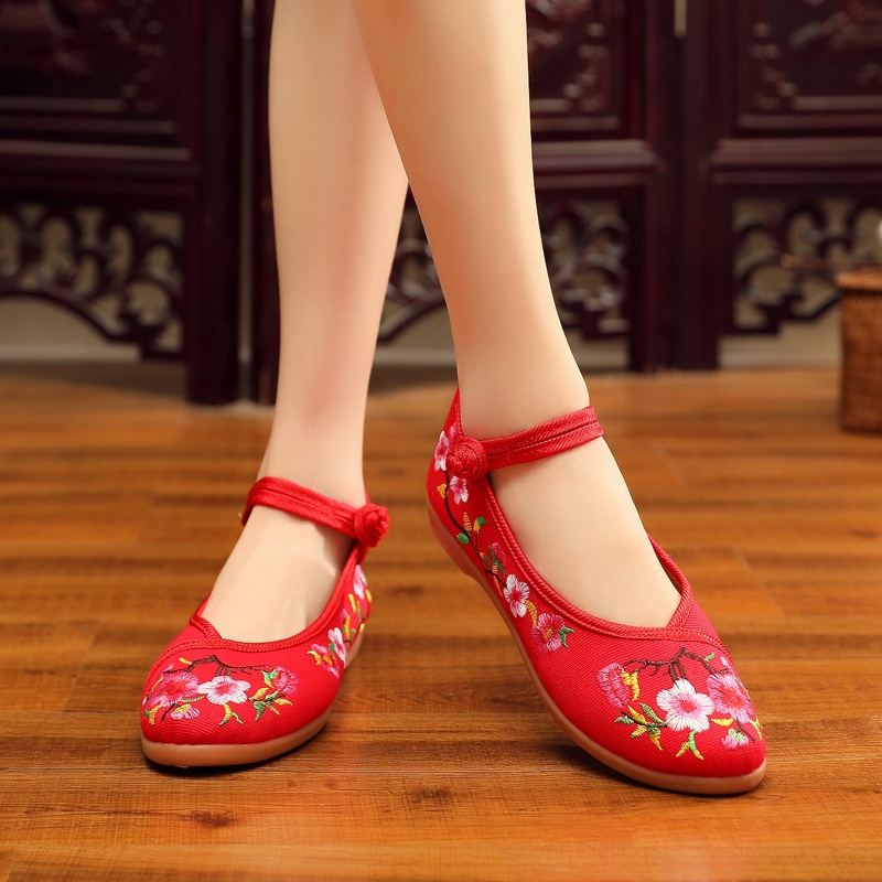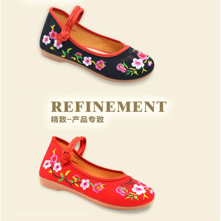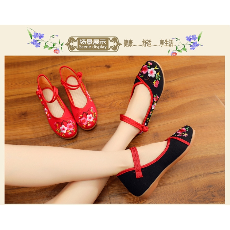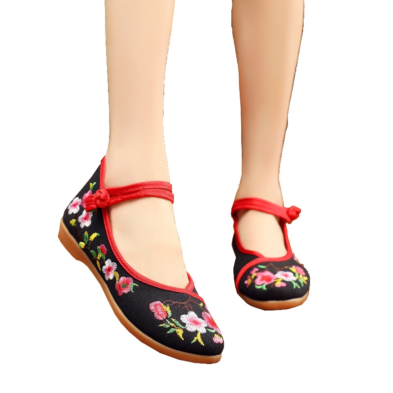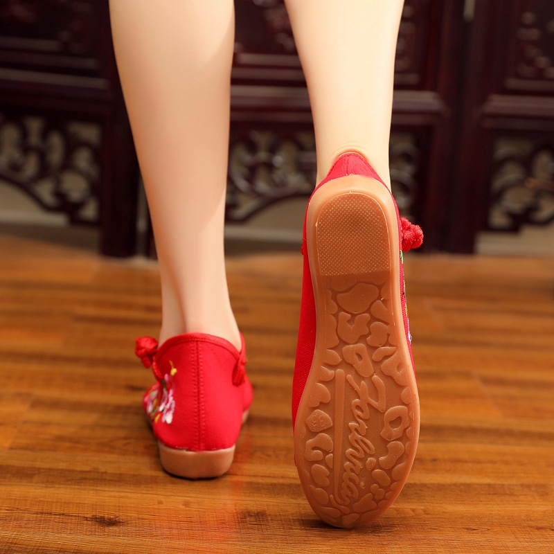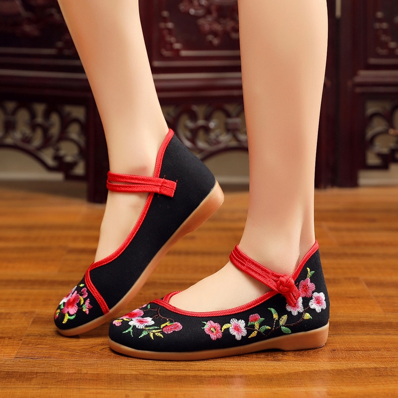Lotus Embroidered Canvas Shoes Ethnic Style Buckle Flat Shoes Tendon Sole Casual Shoes Dancing Shoes