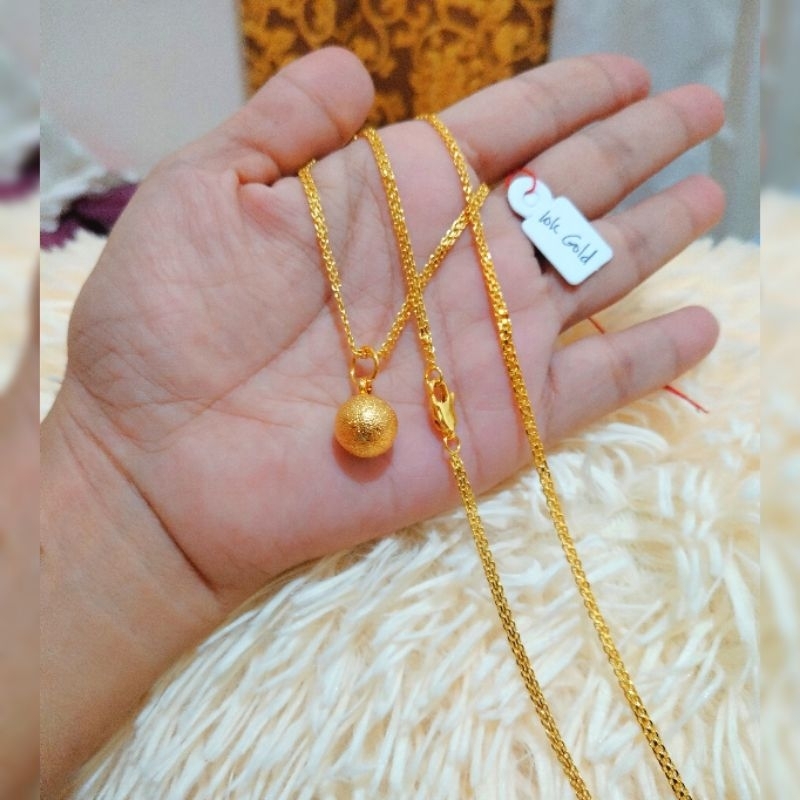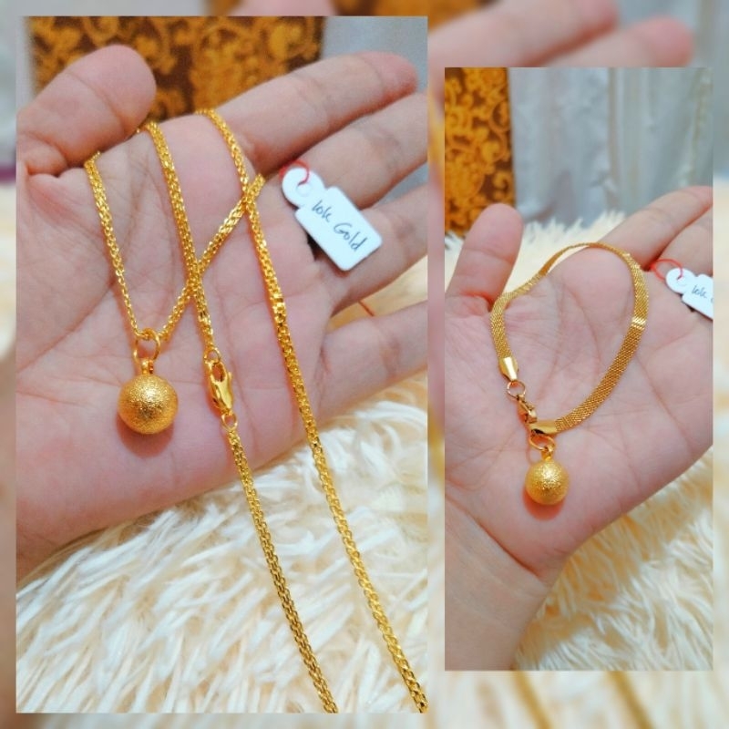 10k Pure Gold Necklace Plus Bracelet set ( Ball Design Jewelry set) NON TARNISH