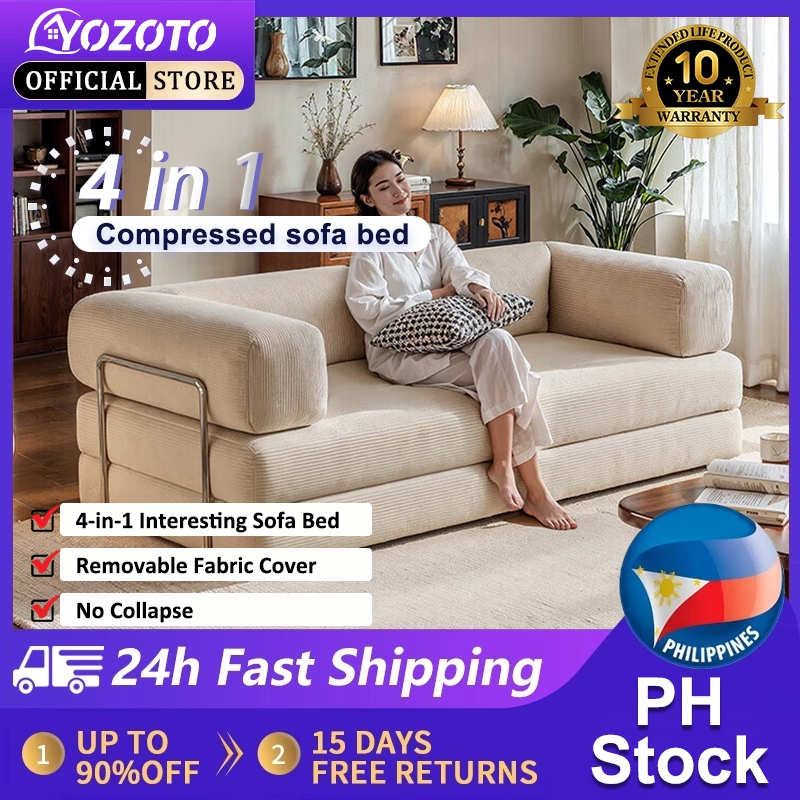 YOZOTO Furniture Folding sofa bed integrated dual-purpose full sponge roll pack compressed fabric sofa with handrail 0.9/1.35/1.5/1.8M Applicable to living room three-person