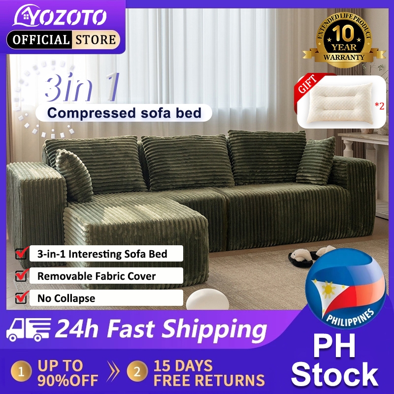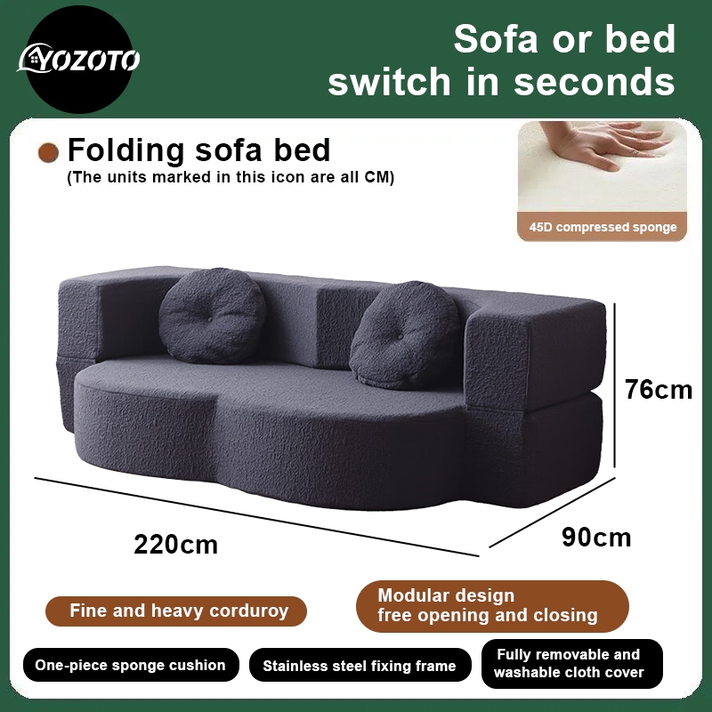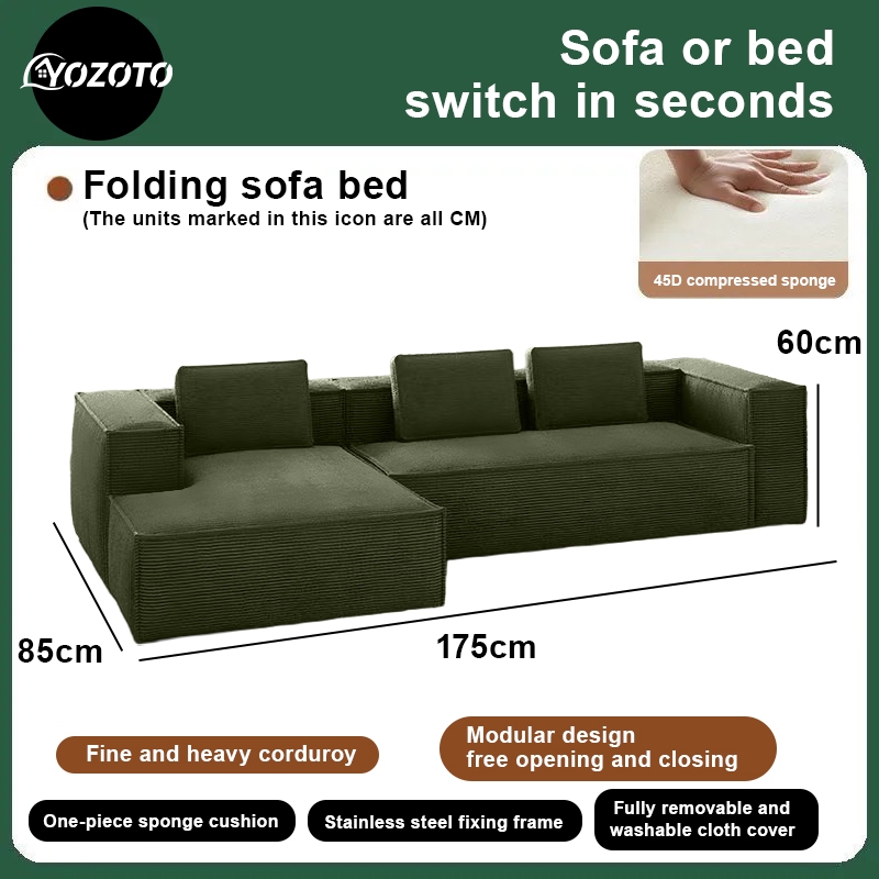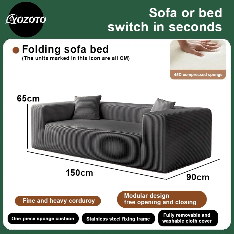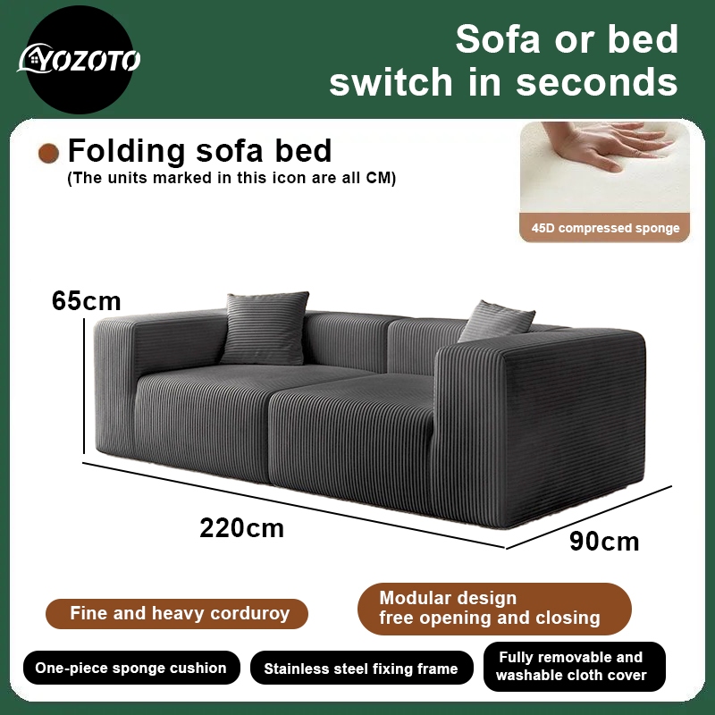YOZOTO Furniture Retro Folding sofa bed integrated dual-purpose full sponge roll pack compression fabric sofa with handrail Applicable to living room three-person small
