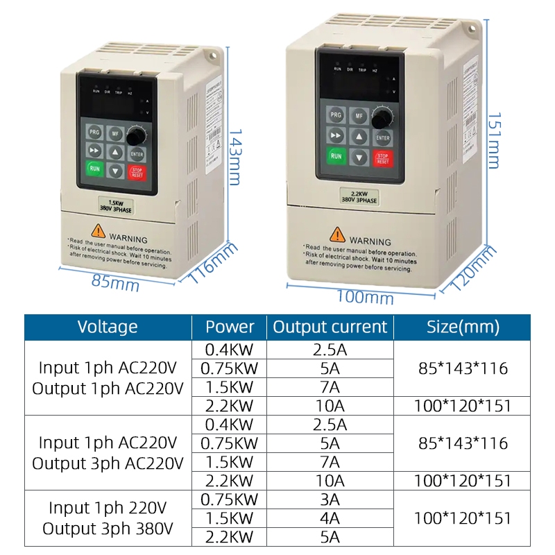 VFD 220V 380V 0.4KW 0.75KW 1.5KW 2.2KW Motor Speed Controller Variable Frequency AC Drive Inverter