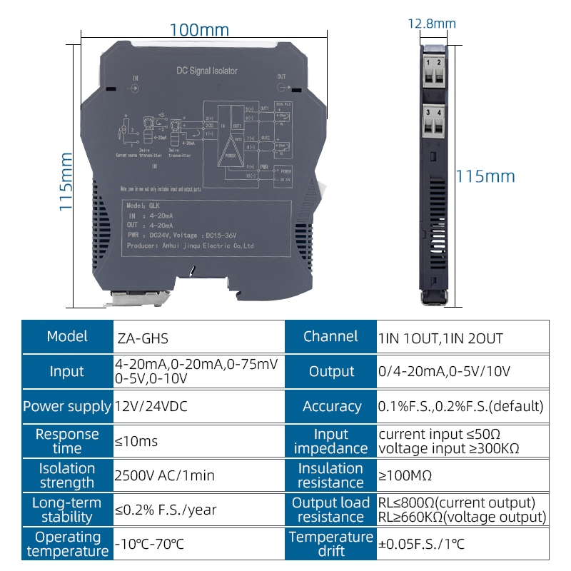 Analog Signal Isolator 4-20mA 0-5V 0-10V High Precision DC Current DC24V Signal Isolator Transmitter