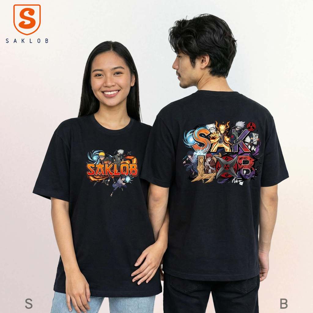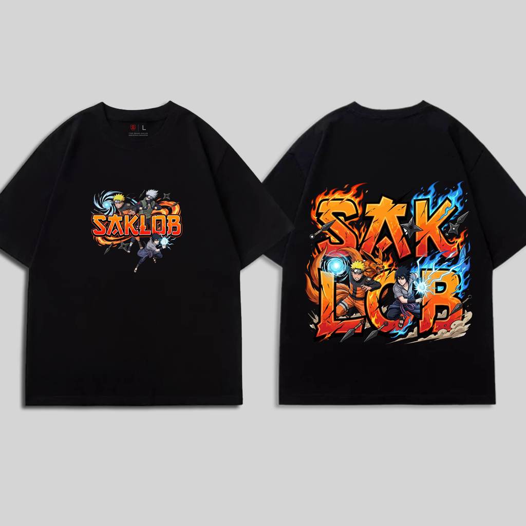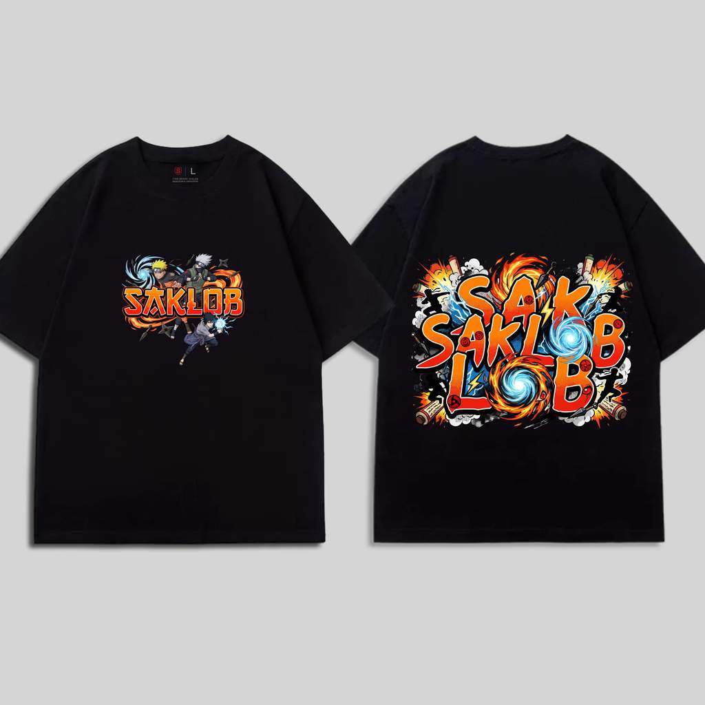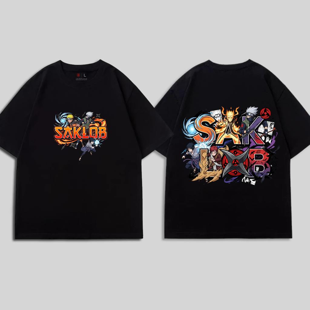 SAKLOB 100% cotton Naruto anime series printed pattern T-shirt black, white, red, blue, and green