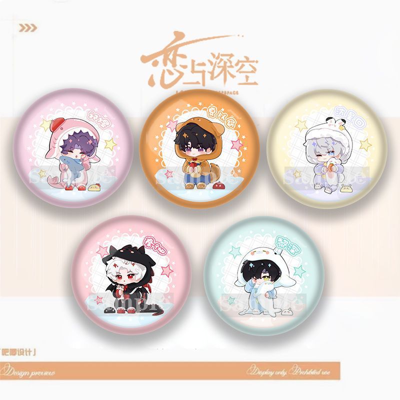 Love and Deepspace Chibi Character Pins – 58mm Handmade Metal Badges with Glitter Film (Xavier/Sylus/Zayne/Rafayel Full Set) JCRK