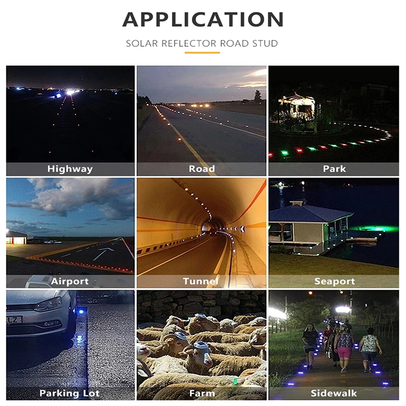 Solar Road Stud Light 6 LED Square Driveway Lights Outdoor Waterproof Traffic Marker Light