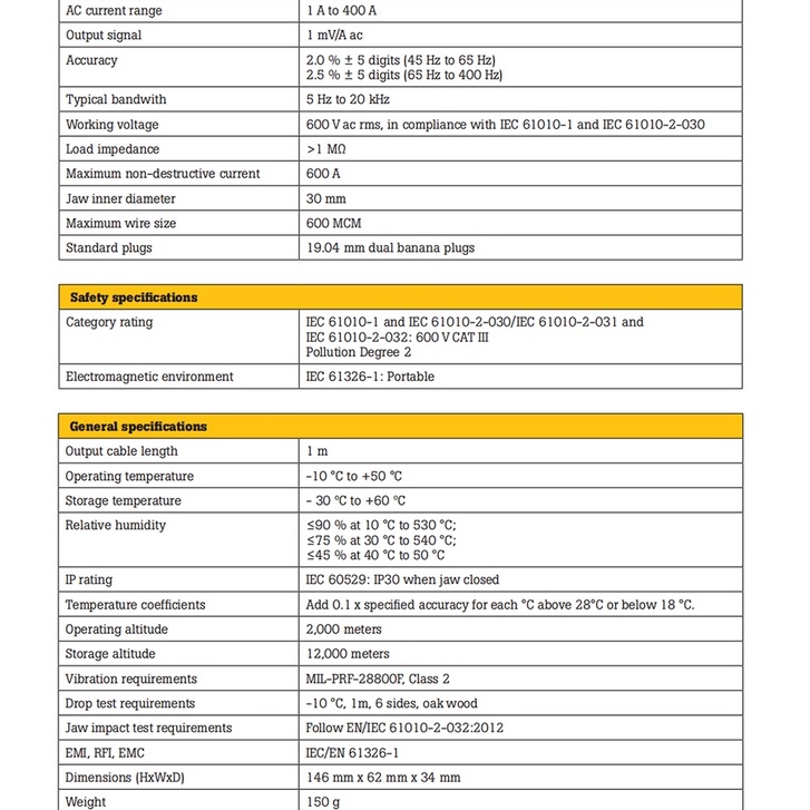 i400E Fluke AC current clamp can be matched with the multimeter oscilloscope new original i400E 400A Current Banana Clamp