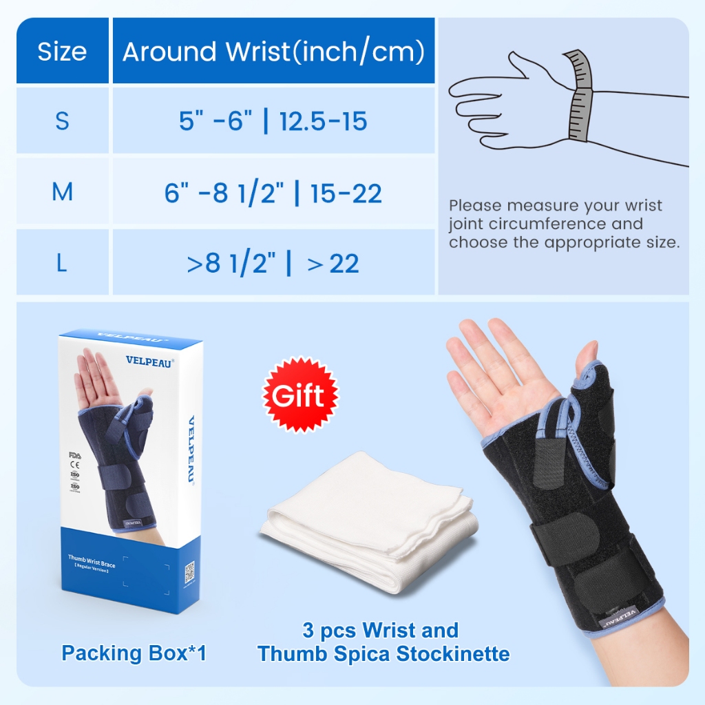 VELPEAU Wrist Support with Thumb Spica Splint for De Quervain's Tenosynovitis, Carpal Tunnel Pain