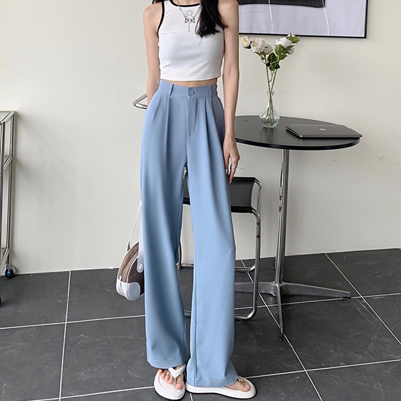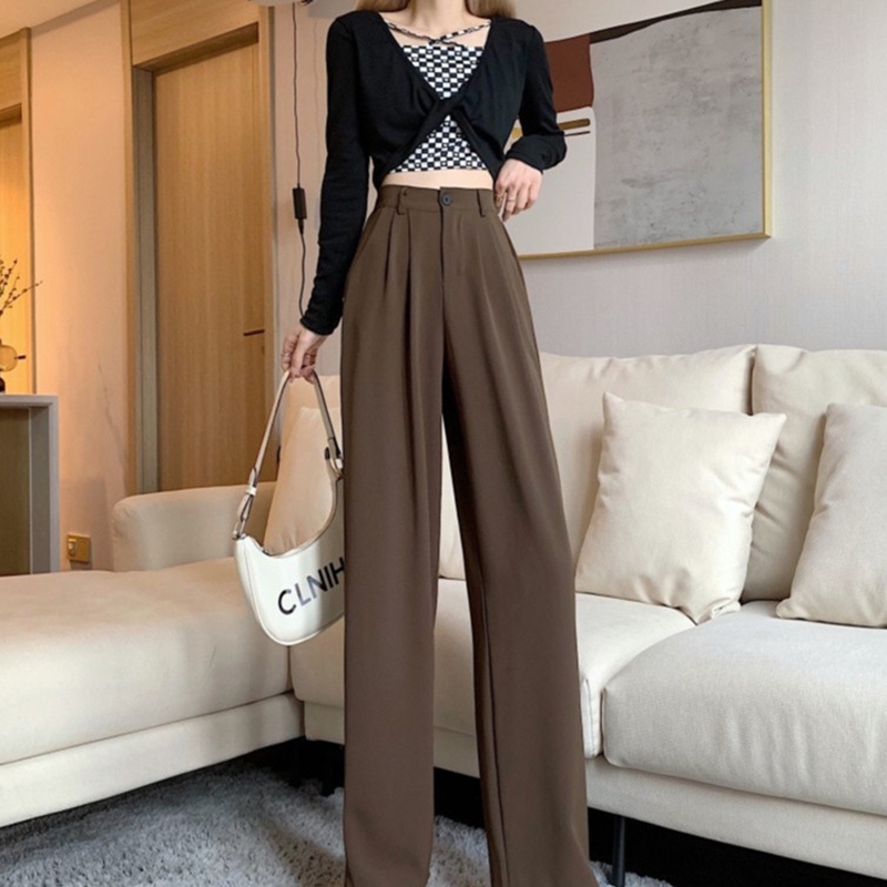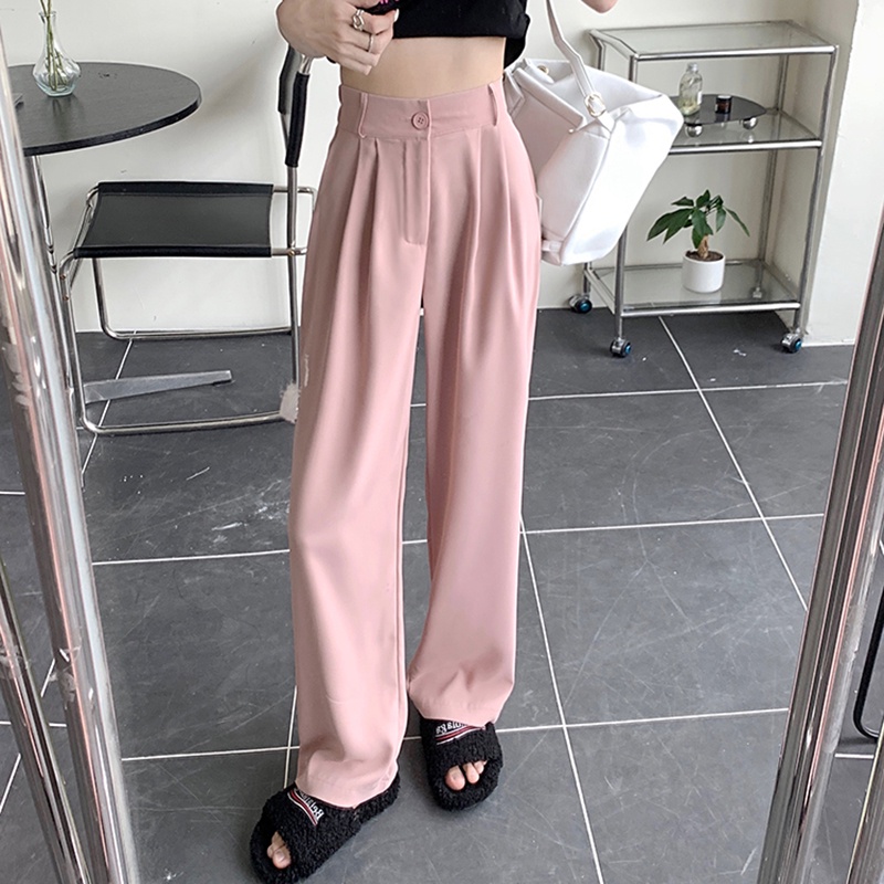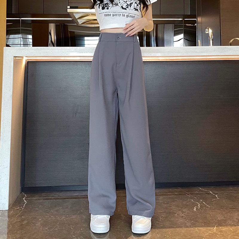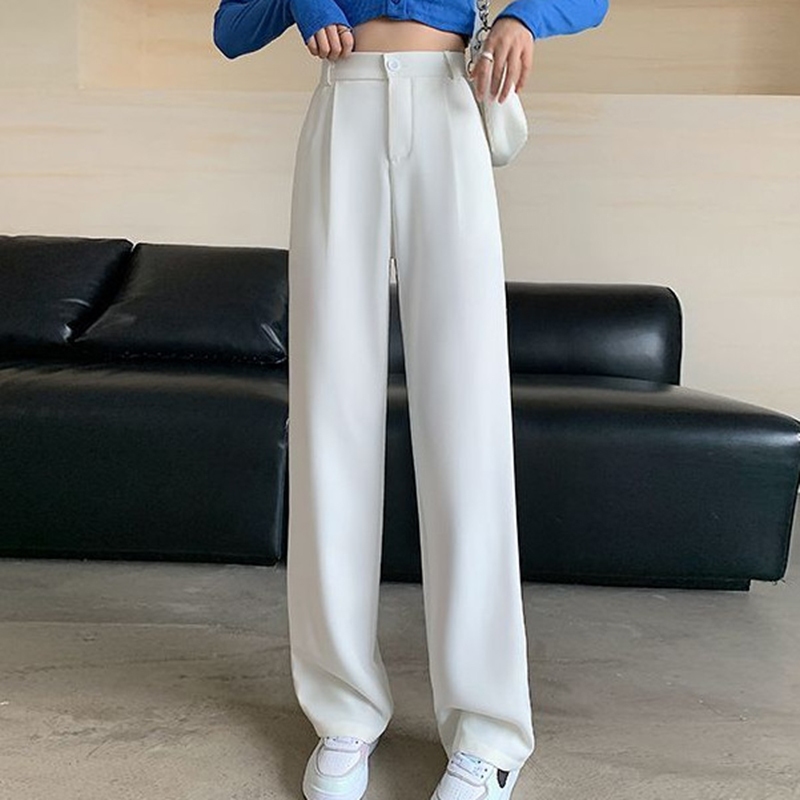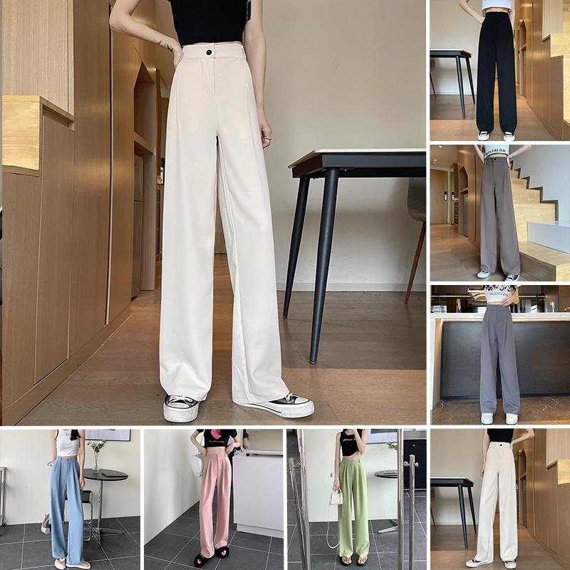【Hermarou】Plus Size 23-45 Unisex Highwaist Suit Pants Women Korean Wide Leg Trouser Straight Black Pants Women Jammy High Waist