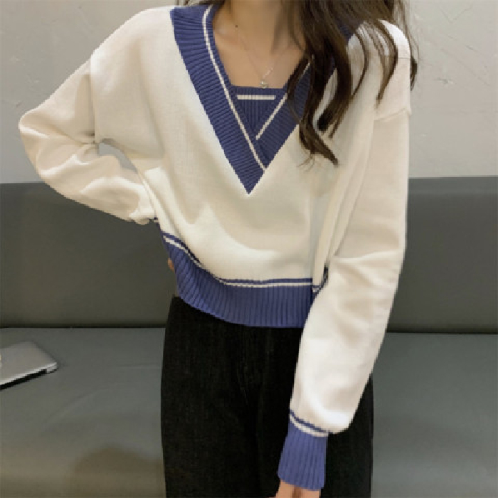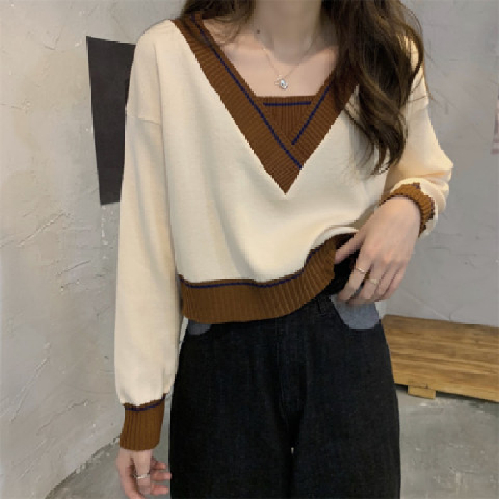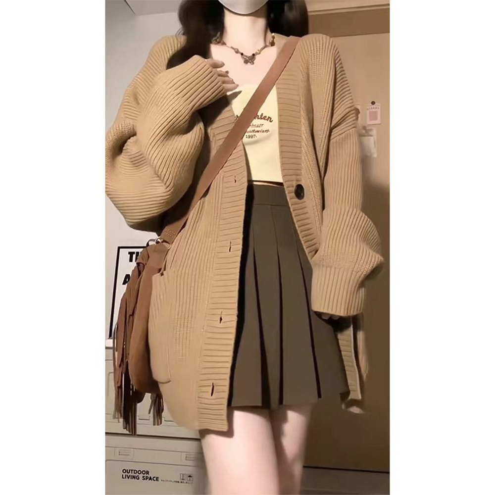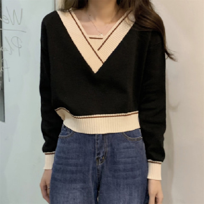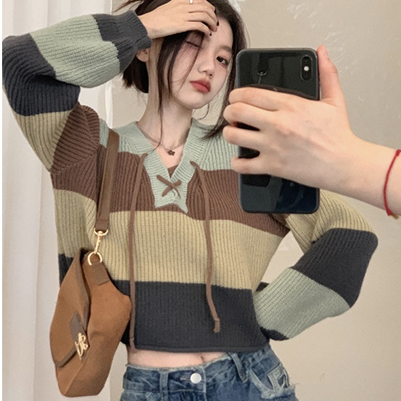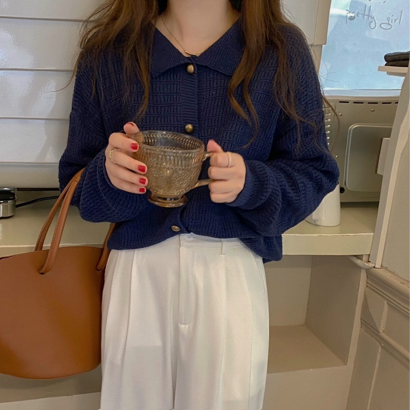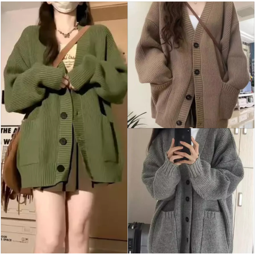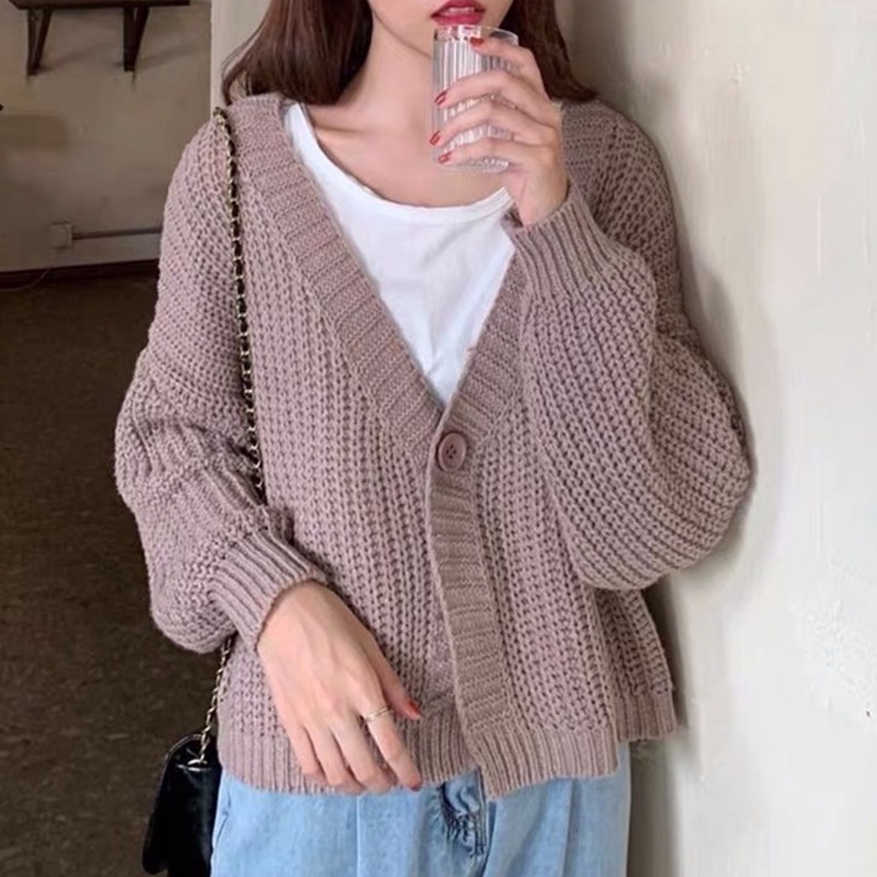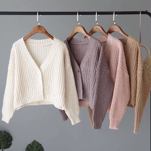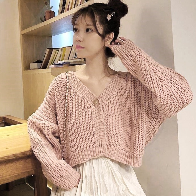 【Ready Stock】Korean Fashion All-match V neck Crop Top Knit Sweater Cardigan For Women Clothing Short Long Sleeves Knitted Jacket for Ladies Outer Wear tops