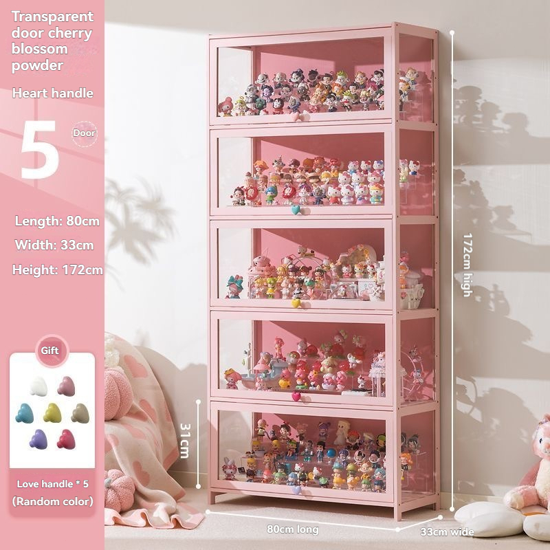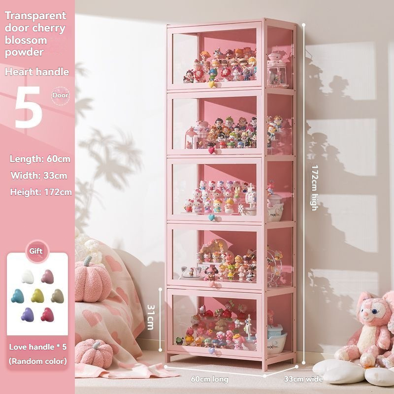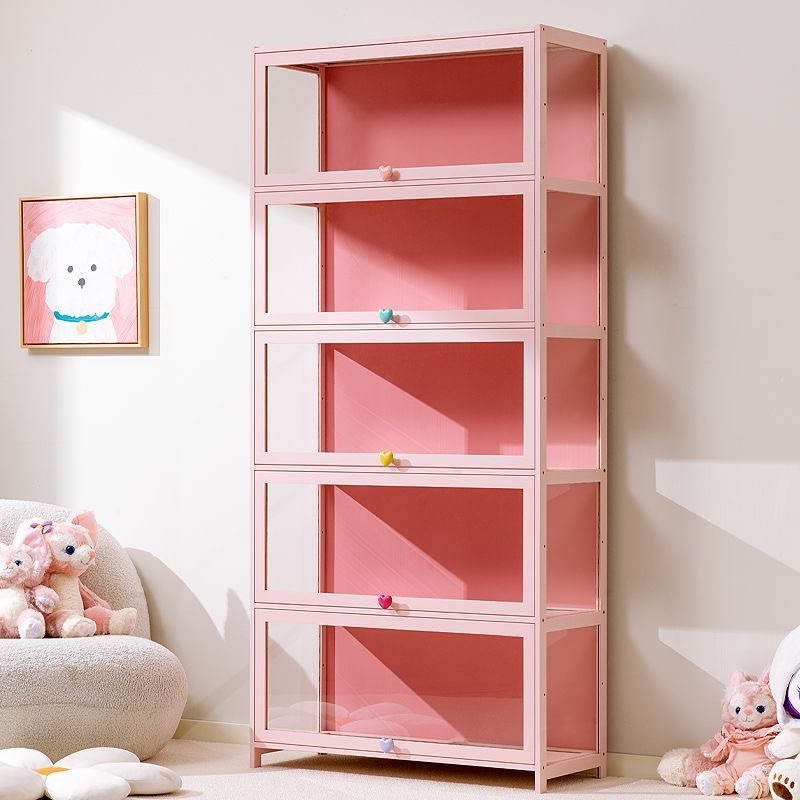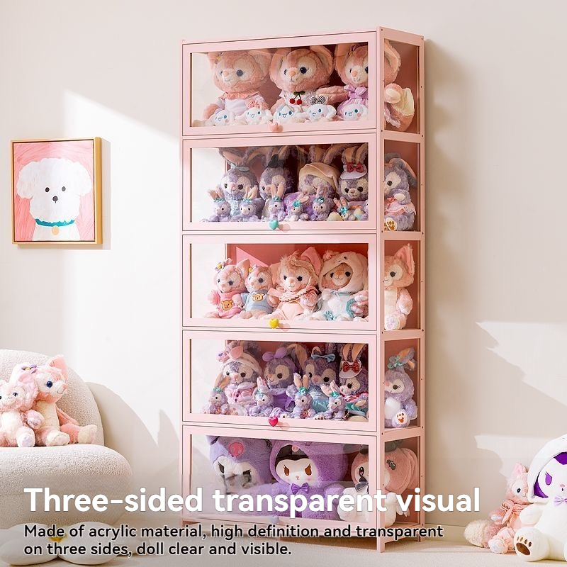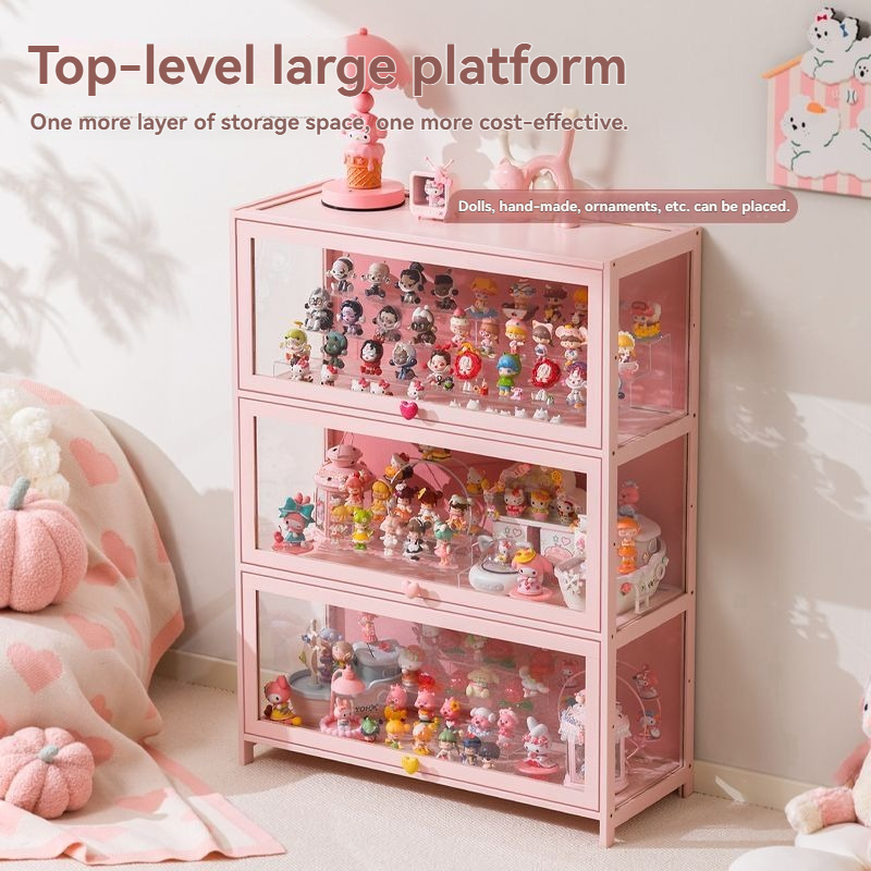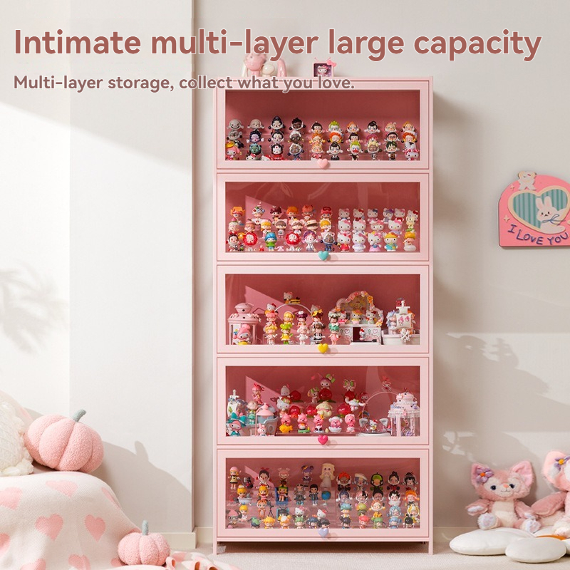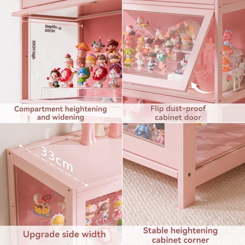 Pink 5Layers 40-80cm Display Cabinet Acrylic Bamboo 3-sideTransparency Organizer Cabinet