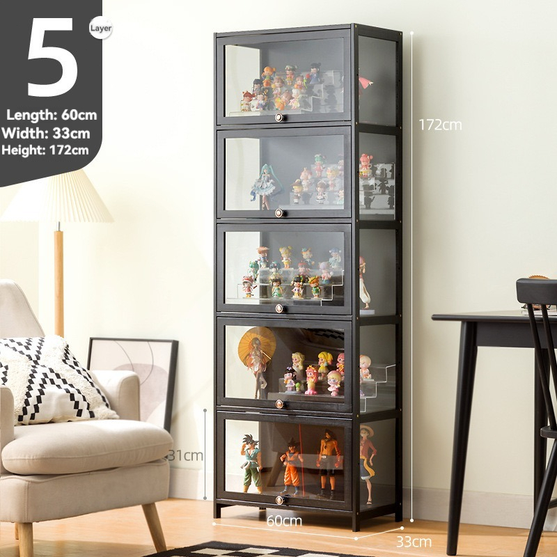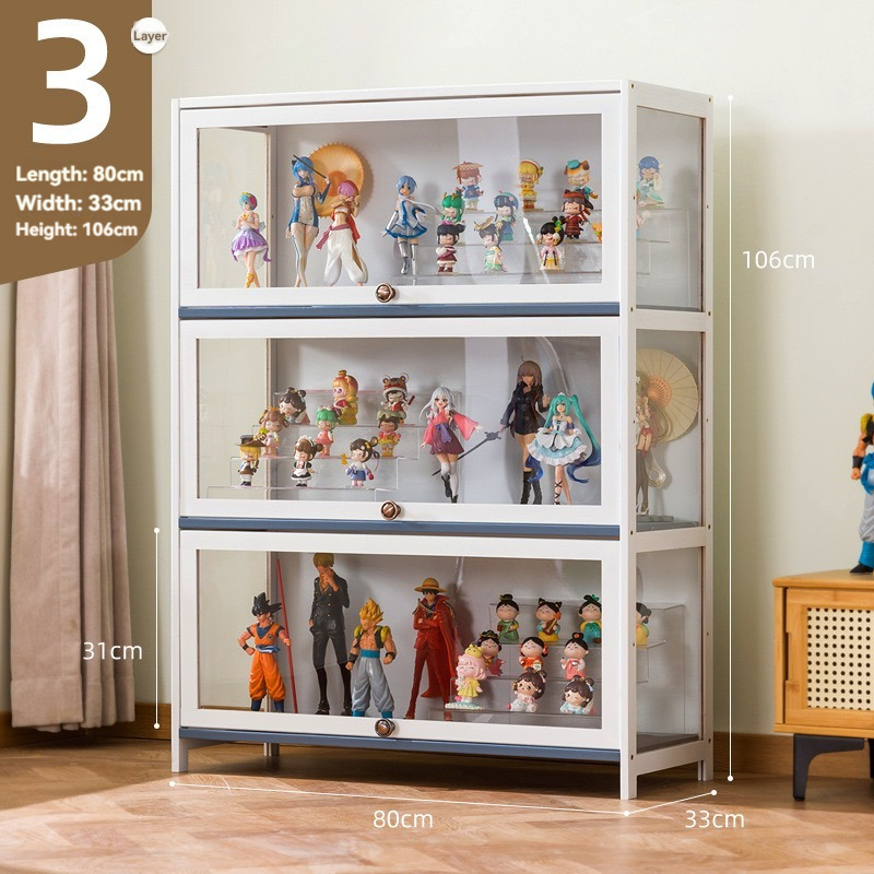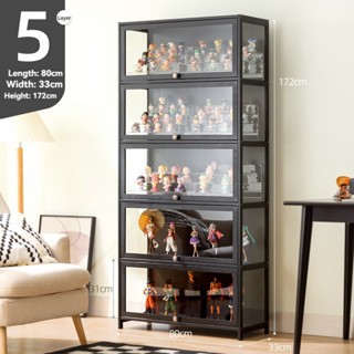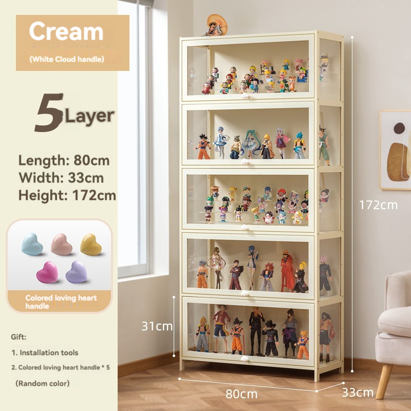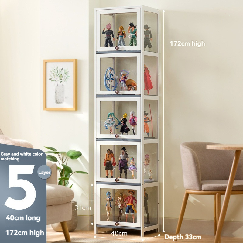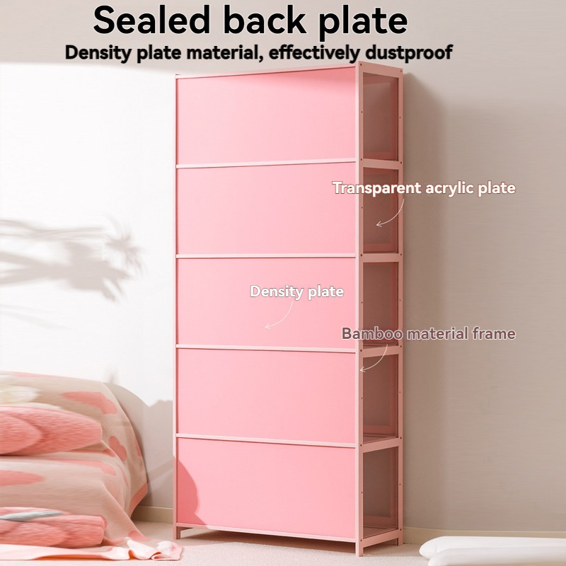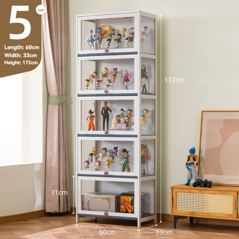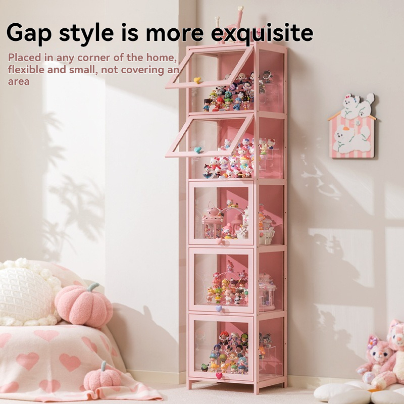 Pink 5Layers 40-80cm Display Cabinet Acrylic Bamboo 3-sideTransparency Organizer Cabinet