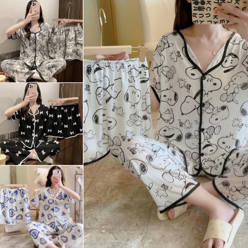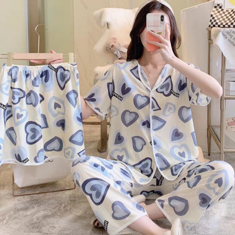 Korea 3 in 1japama set Set Sleepwearfor women summer home wear in a casual style with Short Sleeves