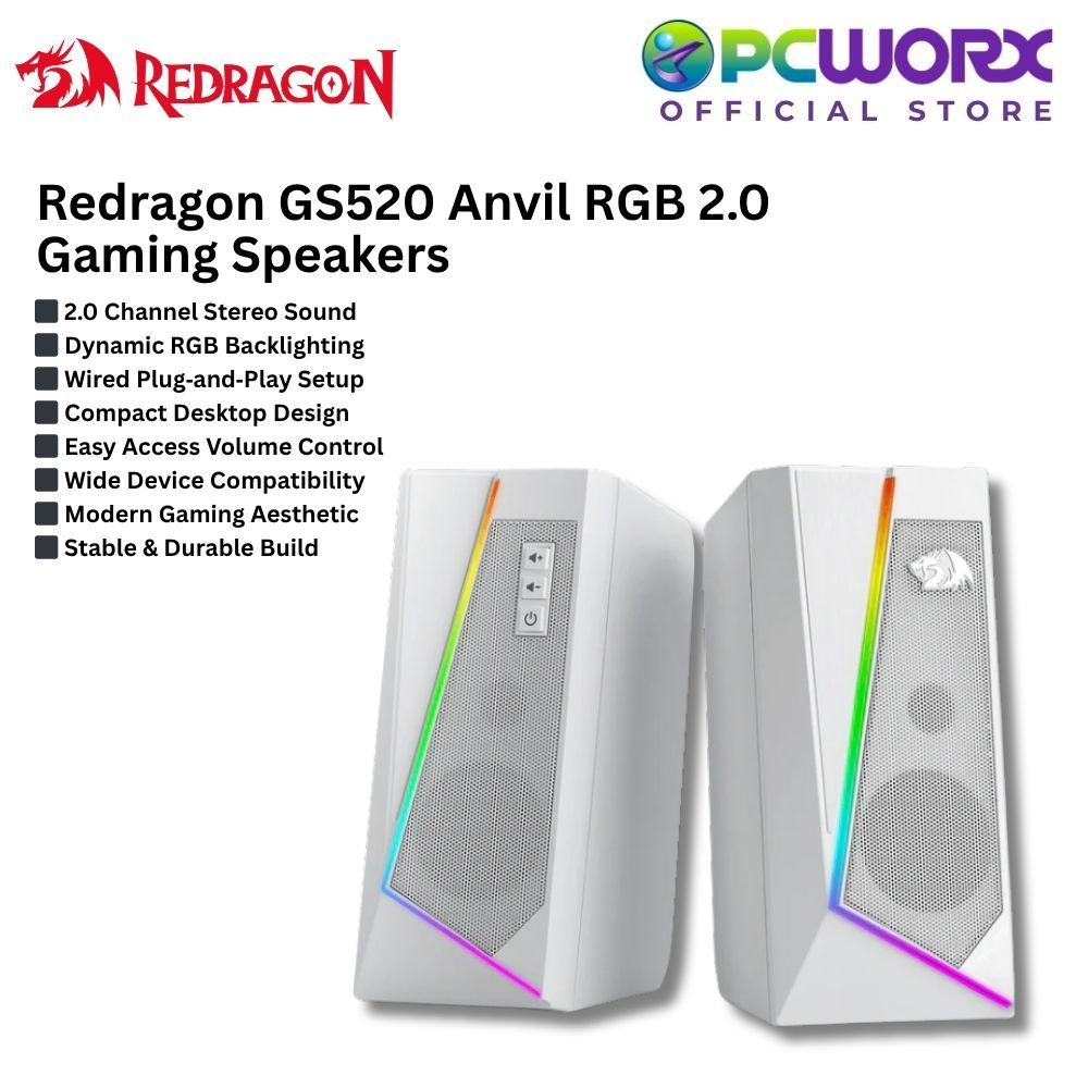 Redragon GS520 Anvil RGB 2.0 Wired Desktop PC Gaming Speakers Sound System Laptop | Black / White